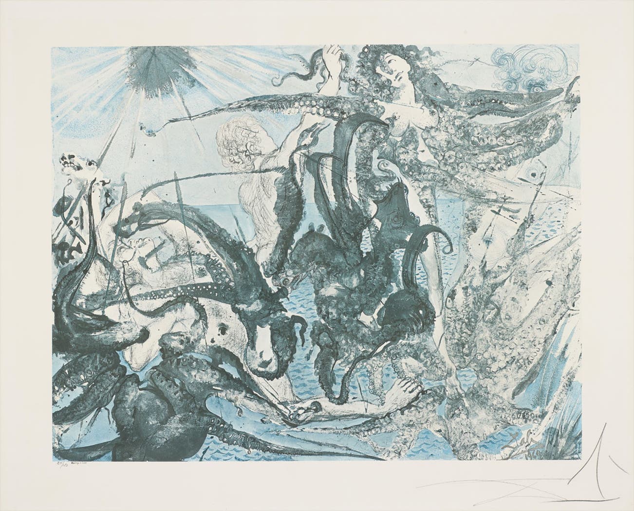 Spanish | B. 1904 D. 1989Salvador Dalí was perhaps the most broadly known member of the Surrealist movement of the early twentieth century. Heavily influenced by Sigmund Freud, the avant-garde style explored consciousness and dream-like states through exaggerated landscapes and bizarre or grotesque imagery. Using the means of painting, sculpture, printmaking, film and literature, Dalí explored these ideas with a meticulous hand and inventive wit.