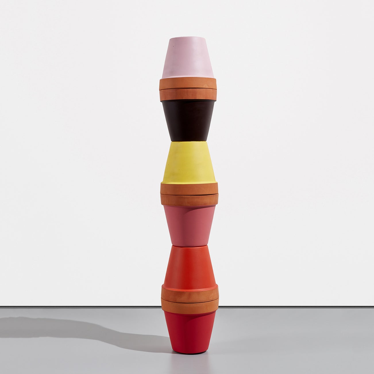 acrylic on terra cotta pots with metal rod, in 6 parts