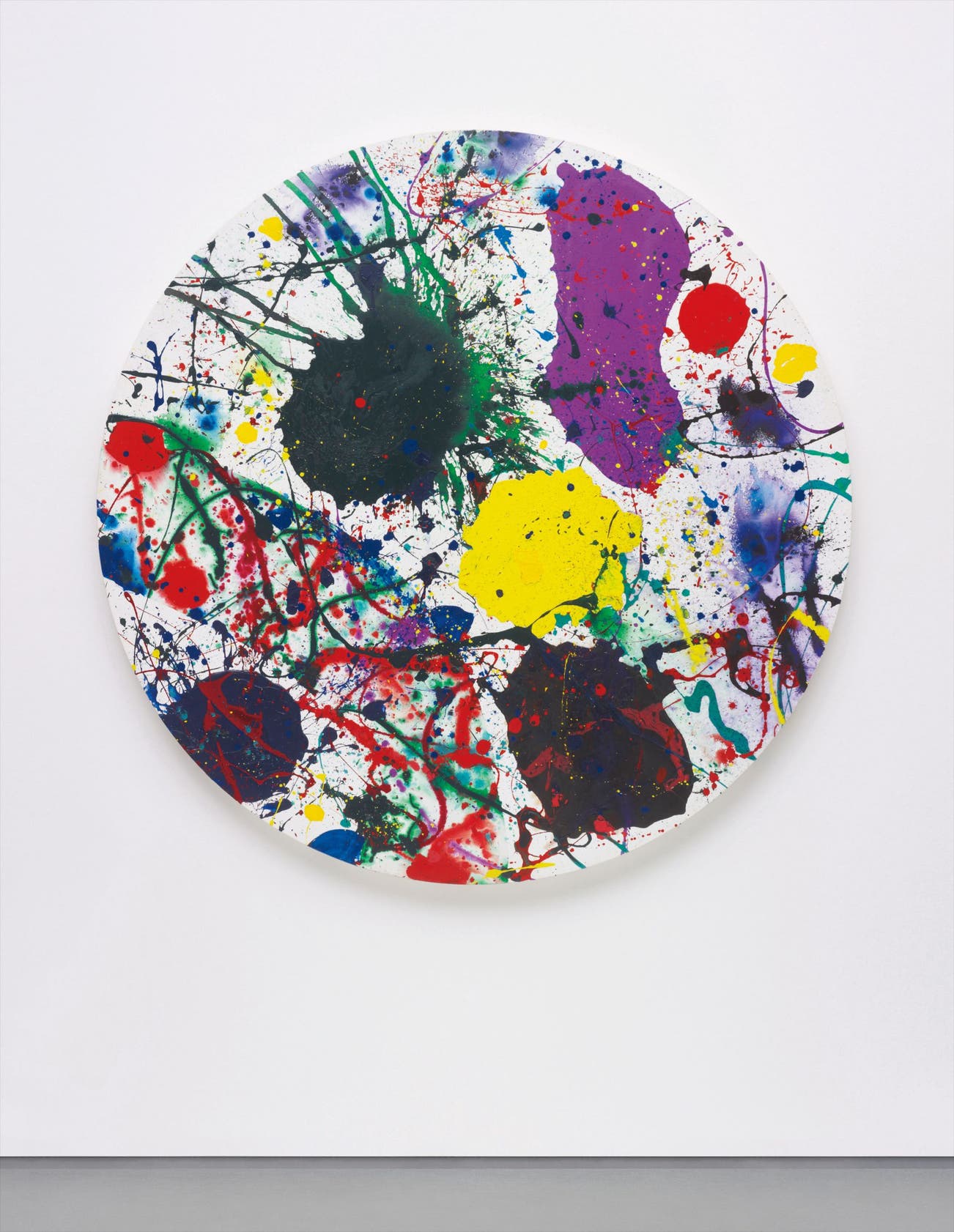 In the 1970’s Francis’ work featured the use of hard colour and regimented structure, yet his stylistic transition throughout the subsequent decade tended towards these less rigid configurations and more expressive uses of colour. Join the Chaos exemplifies his latest stylistic approach, utilising a mixture of dripping and gesturing techniques to create ‘islands of colours’ on white canvases. The combination of these explosions of colour with the vast, stark, white backgrounds creates highly expressive compositions. The round canvas is cropped to size and, due to its circular format and continuation out of the picture plane, emphasises the dynamic forms depicted and evokes the inclusive chaos inferred by the title of the piece itself. Join the Chaos thus perfectly transmits Francis’ appreciation of painting as a depiction of “the beauty of space and the power of containment.”