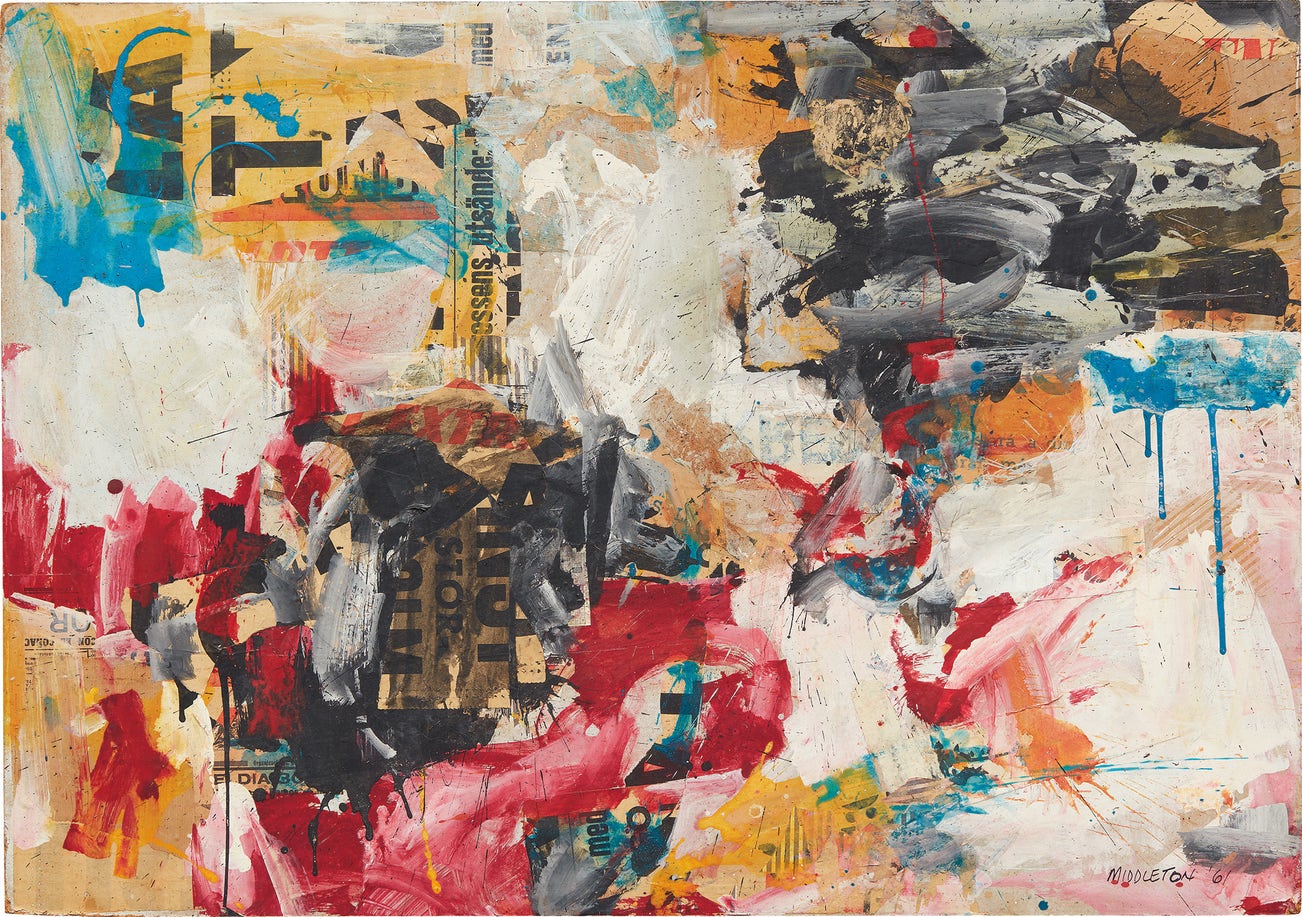 Middleton’s work was collected and shown in major U.S. museums in the 1960s and 1970s, notably in the pivotal 1962 exhibition Forty Artists under Forty at the Whitney Museum of American Art, New York, which more than fifty years later included him in the America is Hard to See collection exhibition in 2015. Though he has received recognition in Europe – the Van Bommel Van Dam Museum in Venlo, Netherlands, organized a retrospective of his work in 1997 –he he only received his first, posthumous solo exhibition in the United States in 2017.