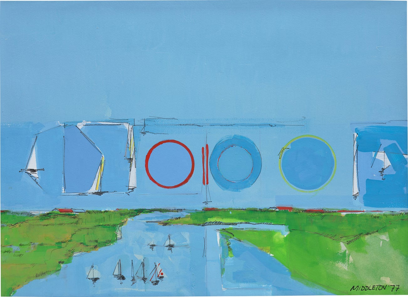 Middleton’s work was collected and shown in major U.S. museums in the 1960s and 1970s, notably in the pivotal 1962 exhibition Forty Artists under Forty at the Whitney Museum of American Art, New York, which more than fifty years later included him in the America is Hard to See collection exhibition in 2015. Though he has received recognition in Europe – the Van Bommel Van Dam Museum in Venlo, Netherlands, organized a retrospective of his work in 1997 –he he only received his first, posthumous solo exhibition in the United States in 2017.