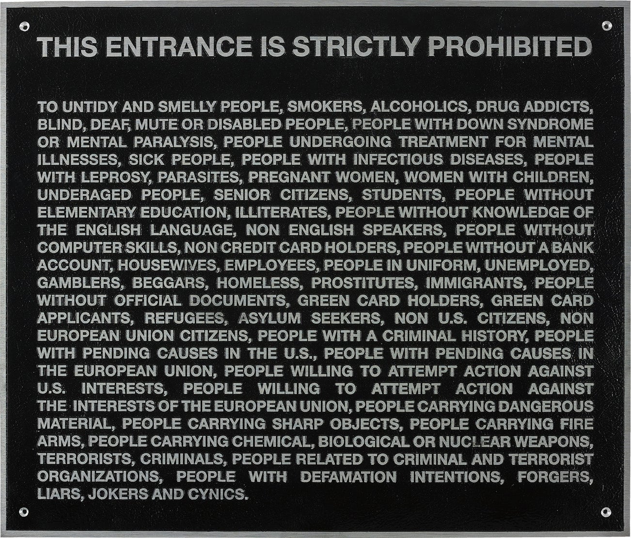 Cast aluminium relief sign with black enamel paint and a hole at each corner.