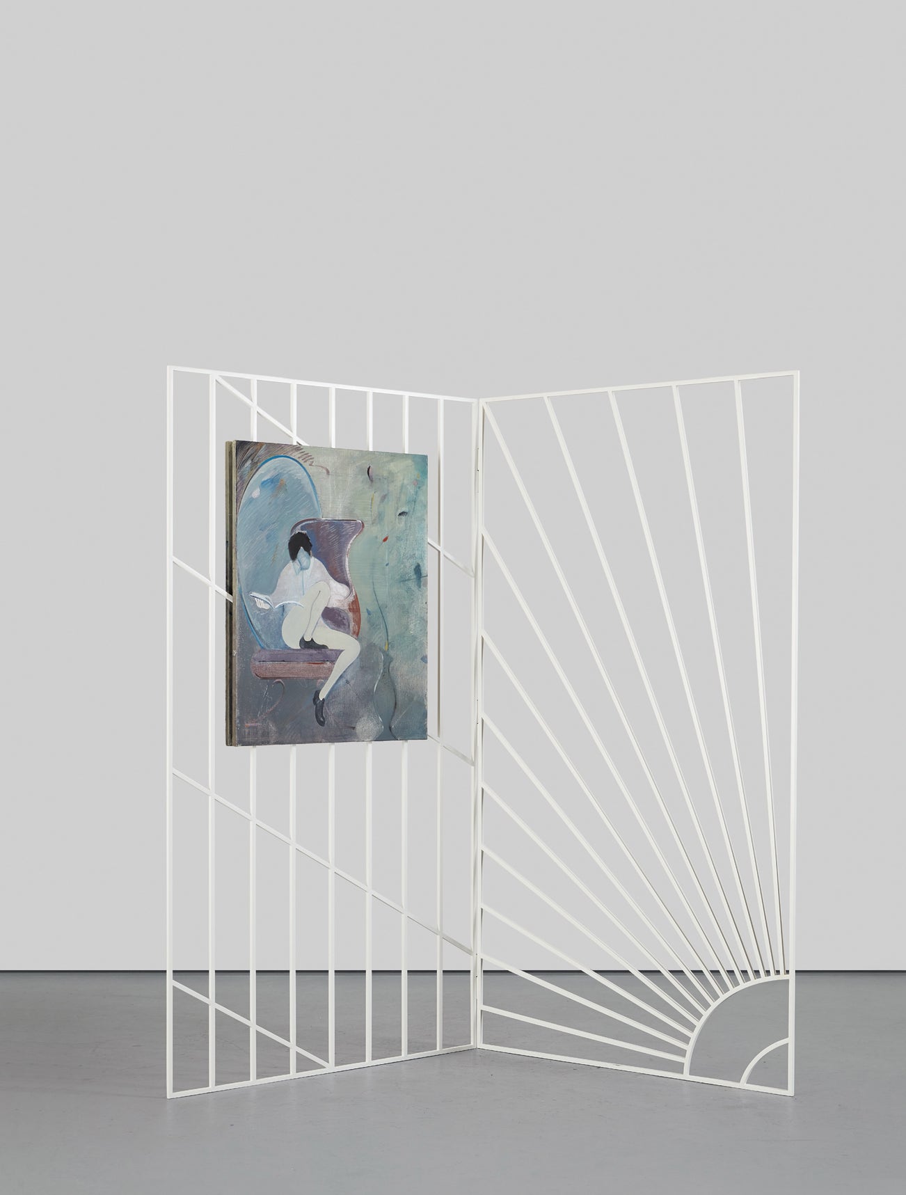 welded and powder coated steel panel, and oil and watercolor on linen, in 4 parts