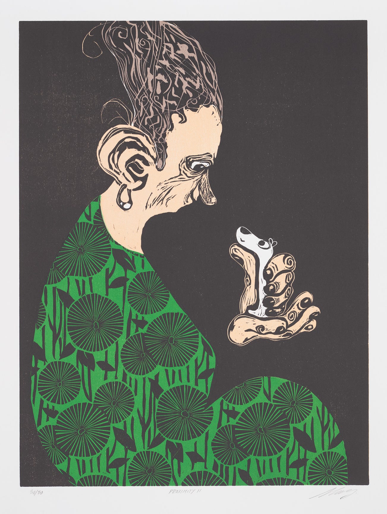 Woodcut in colours, on BFK Rives paper, with full margins.