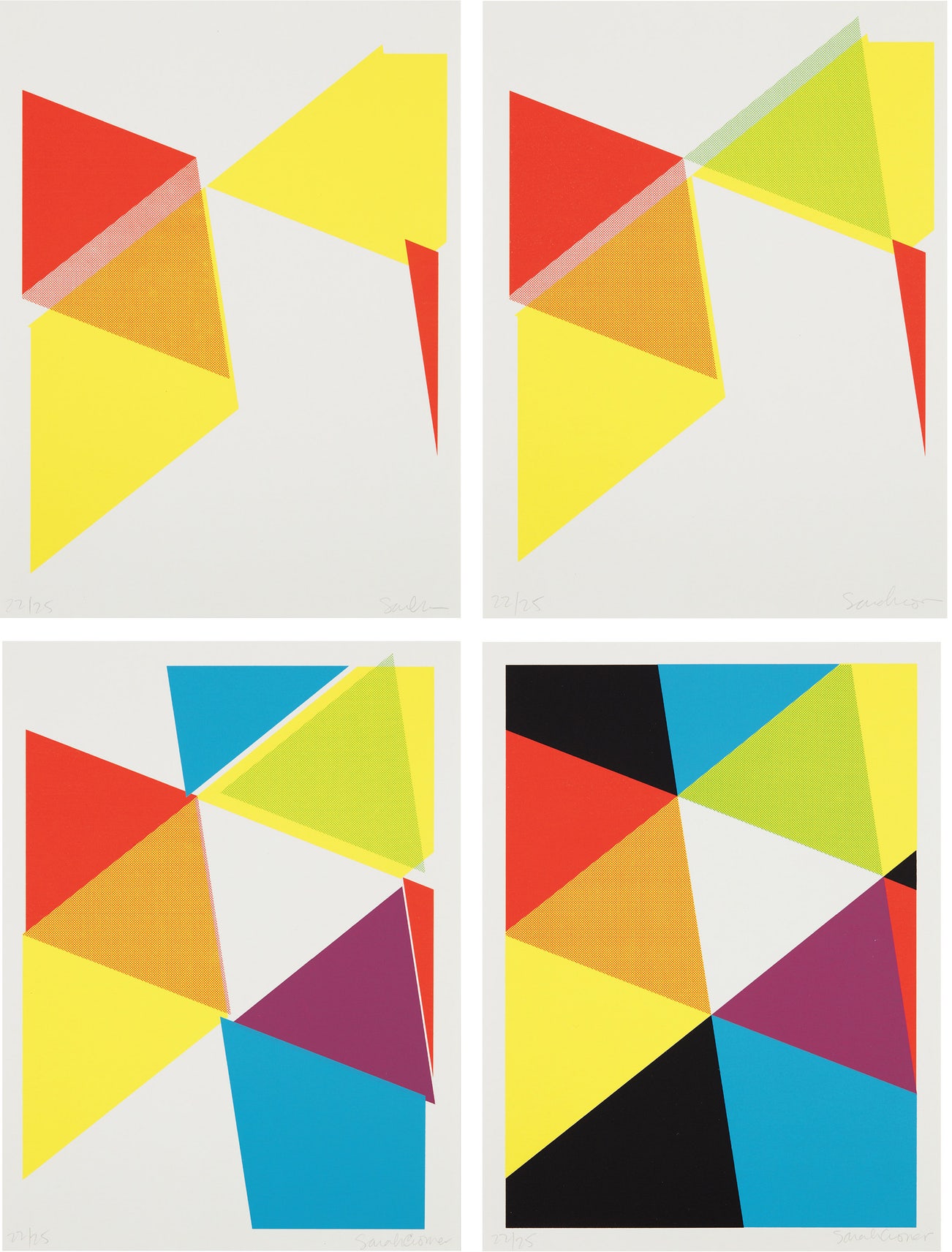 The complete set of four screenprints in colors, on wove paper, with full margins and one paperback risograph catalogue with unique insert.