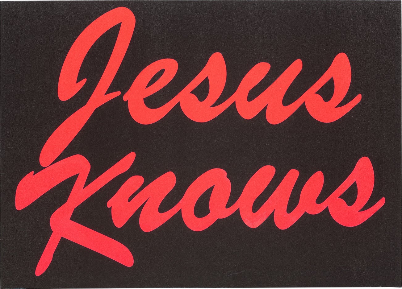 signed, titled and dated '"JESUS KNOWS" Sarah Morris '94' on the overlap