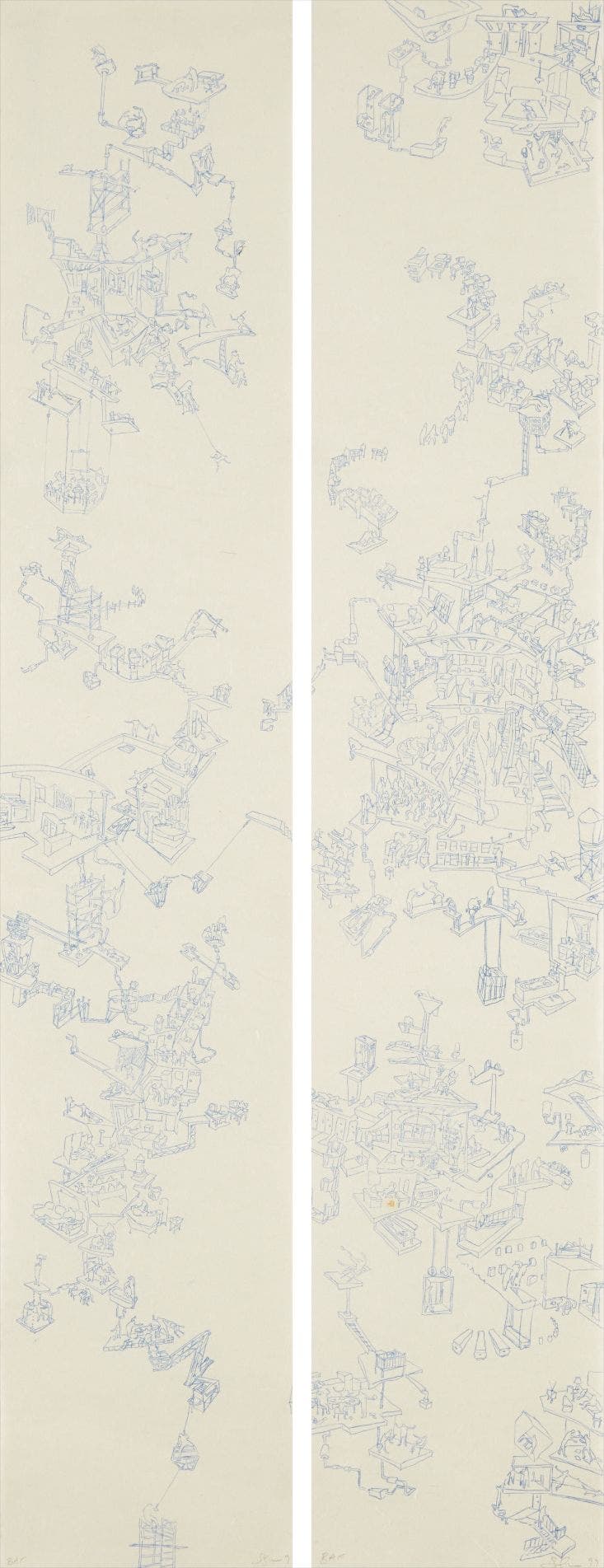The complete set of two lithographs in blue, on Okawara paper, the full sheets,