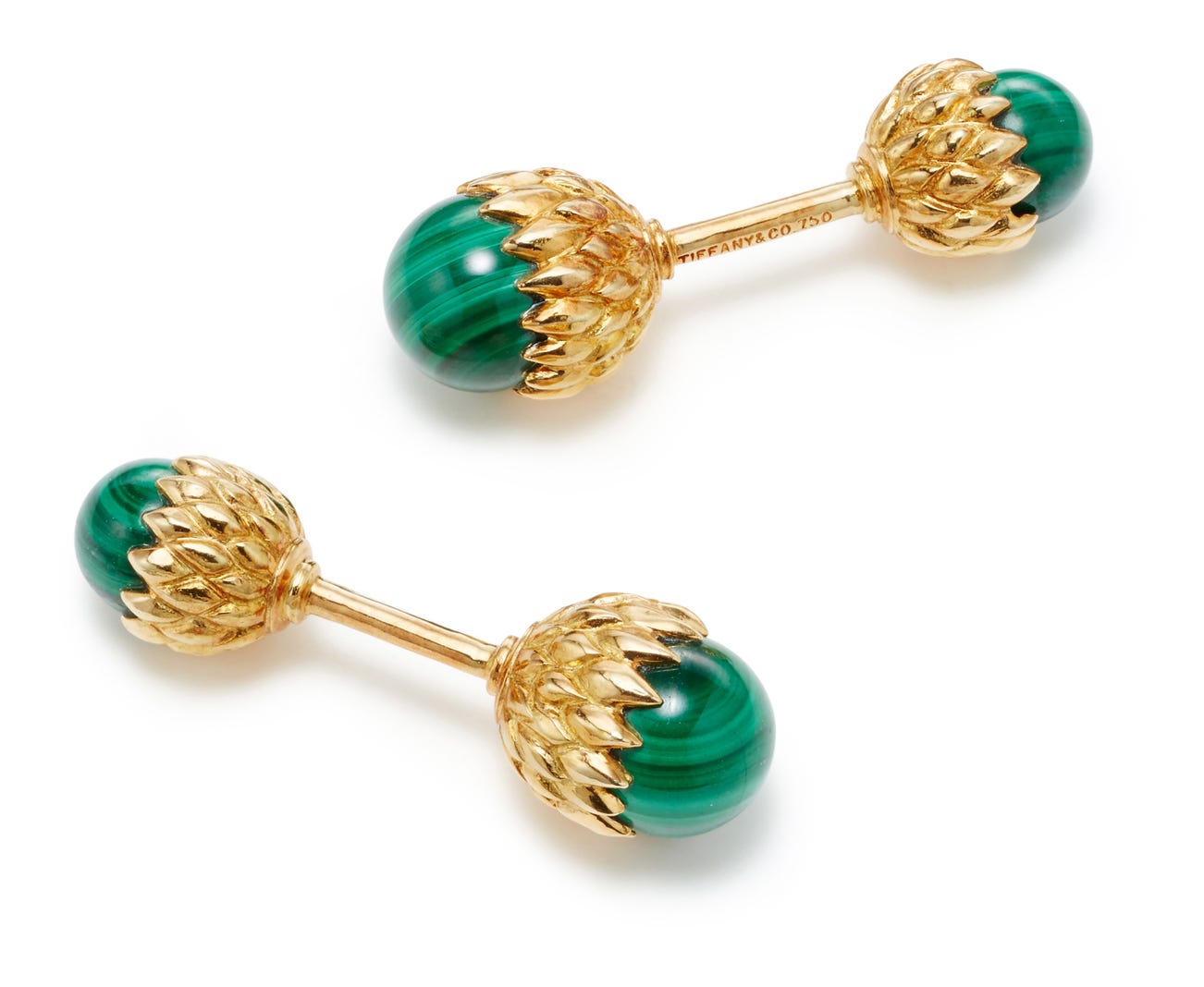A Pair of Malachite and Gold Cufflinks