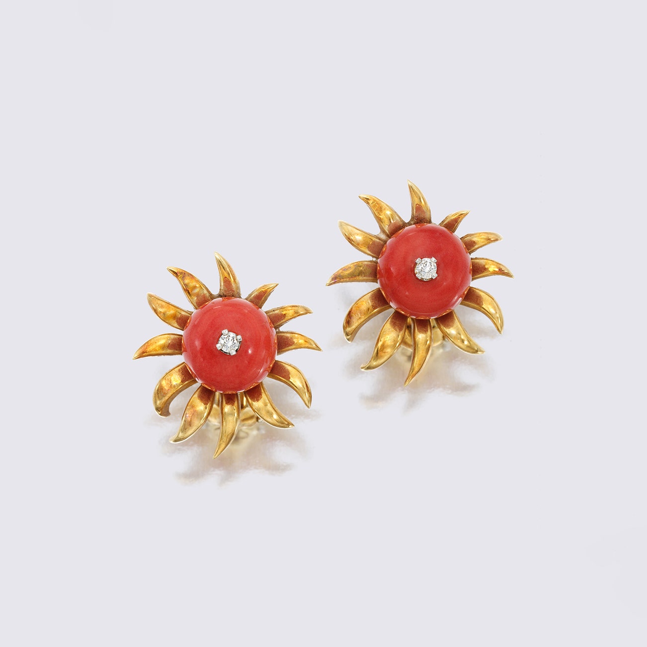 Pair of Coral and Diamond Earrings