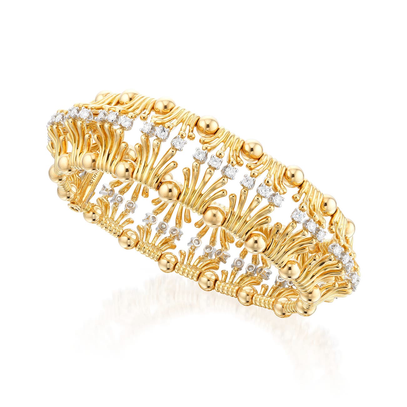 Designed as a bevelled openwork band, centring upon a row of brilliant-cut diamonds, mounted in yellow gold and platinum, signed Tiffany & Co. Schlumberger STD, inner circumference approximately 165 mm, case signed Tiffany & Co..