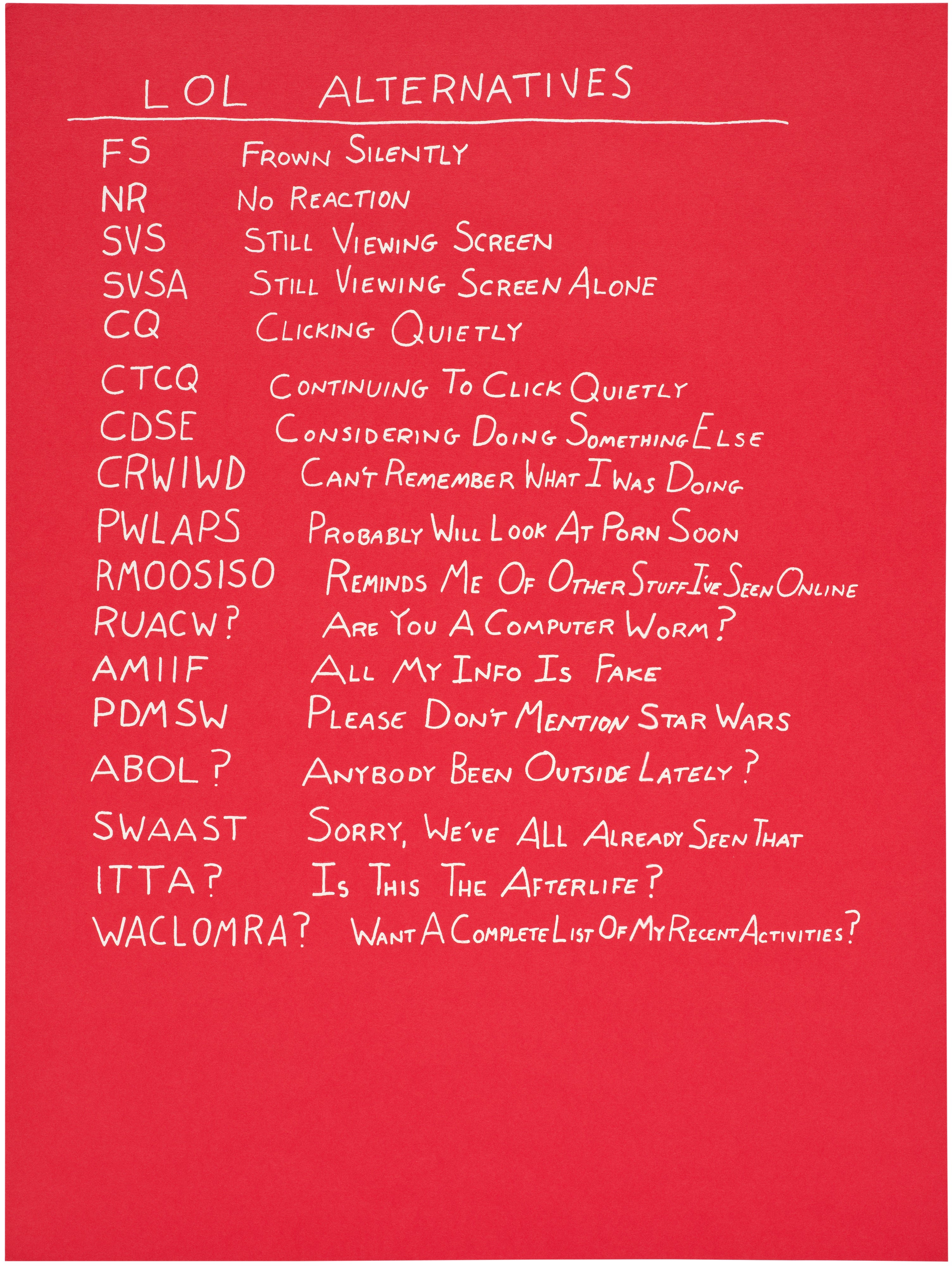 Screenprint in white, on red paper, with full margins.