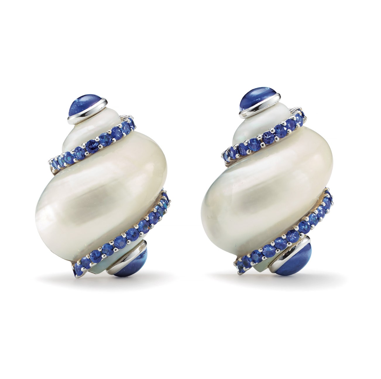 A Pair of Shell, Sapphire and Gold ‘Turbo’ Earrings