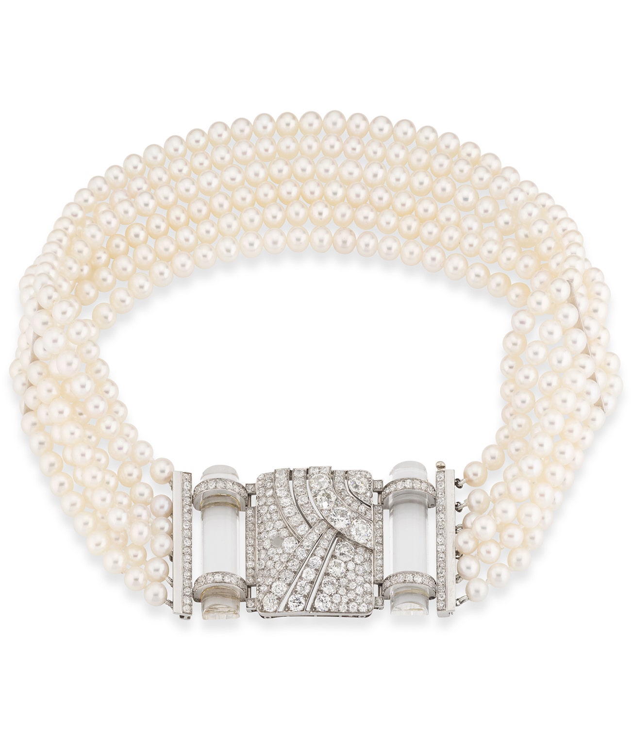 Diamond, rock crystal and cultured pearl choker