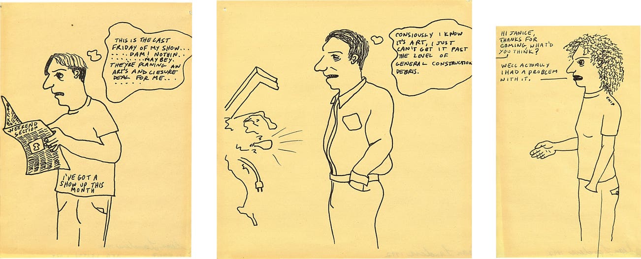 Cartoon (I've Got a Show Up this Month); Cartoon (I Know It's Art); and Cartoon (Chip)