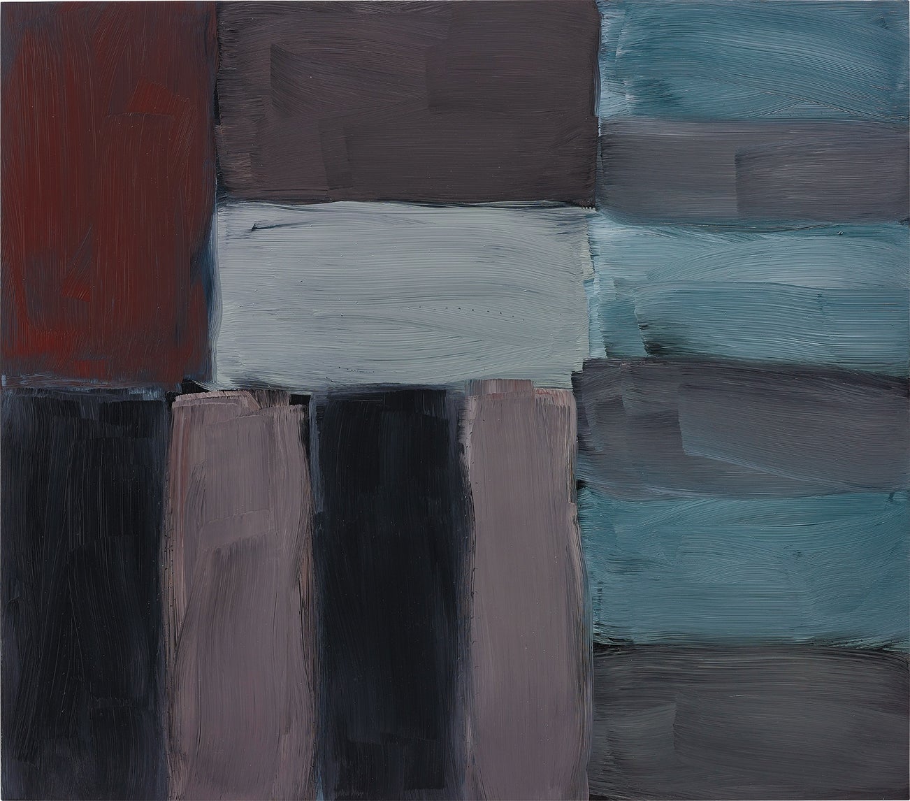 Constructed in what Scully referred to as ‘bricks’, not quite touching, they allow glimmers of the pigment beneath to be revealed, resembling building blocks. Scully’s architectural attitude to form is part of an art-historical narrative having captivated many of his predecessors, from Josef Albers to Ad Reinhardt, Donald Judd and Piet Mondrian. ‘Scully injected Piet Mondrian's strict grid like architecture into Rothko, animating his quiet mediations and giving early body and weight to his vaporous clouds of color' (Stephen Bennett Phillips, 'Becoming Sean Scully', Wall of Light, exh. cat., Phillips Collection, Washington, D.C., 2005, p. 19). Scully’s construction and understanding of numerous layers of colour consequently fits into the historical analyses on the discernment of space, hue, and their affiliation to the human involvement.