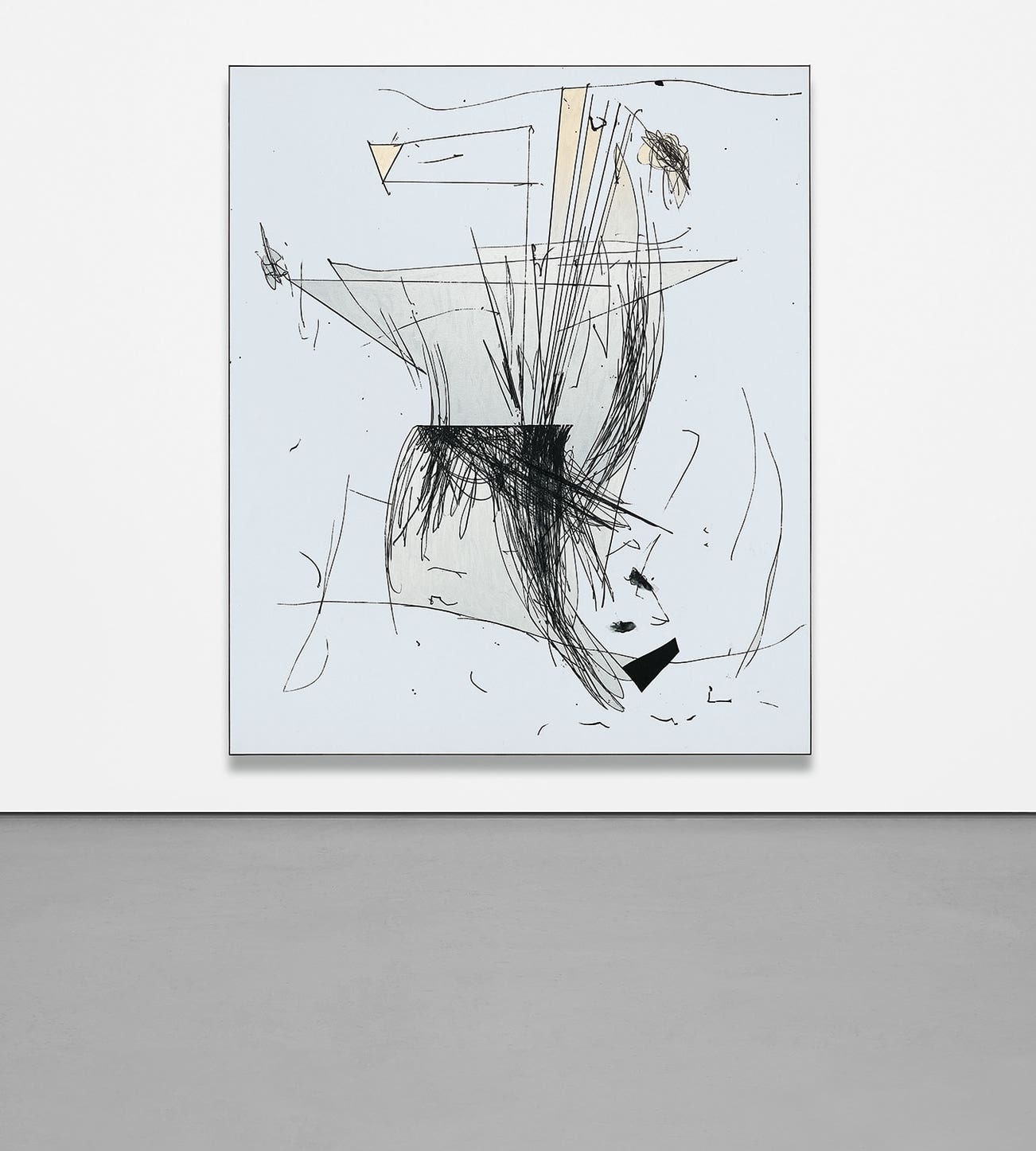 gouache, acrylic, alkyd and oil on canvas, in artist's frame