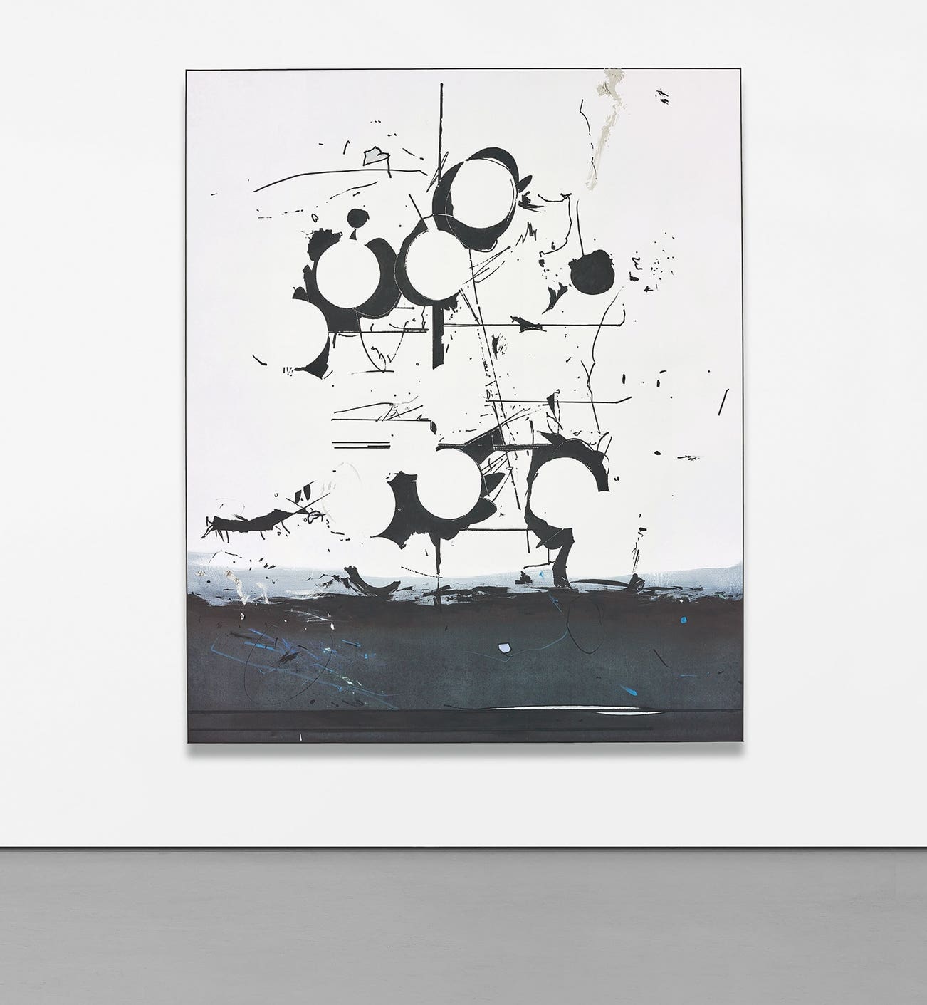gouache, acrylic, alkyd and oil on canvas, in artist's frame