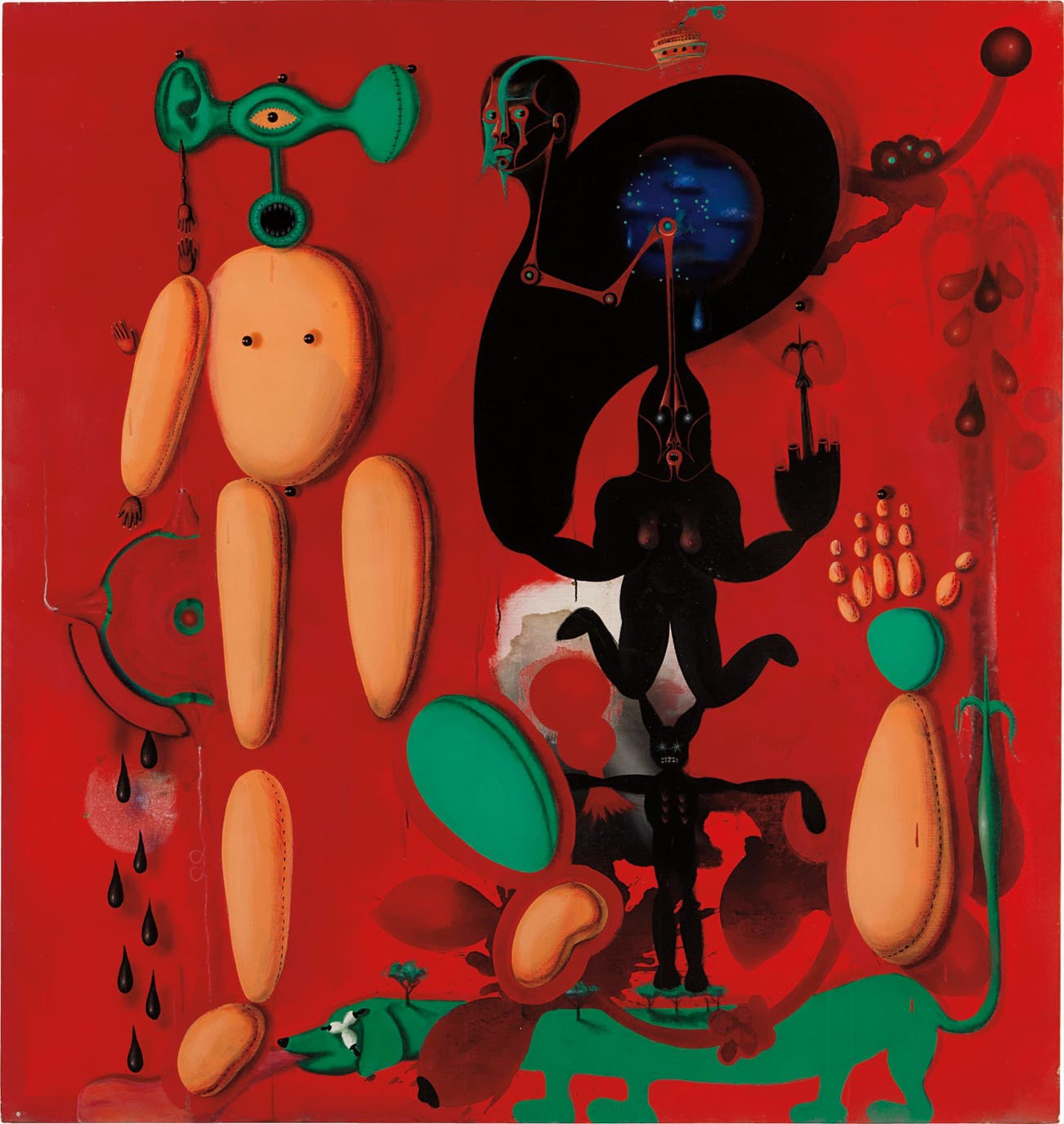 Signed, titled and dated "Changó llen con el cielo en la mano Segundo Planes Herrera 1994" on the reverse.