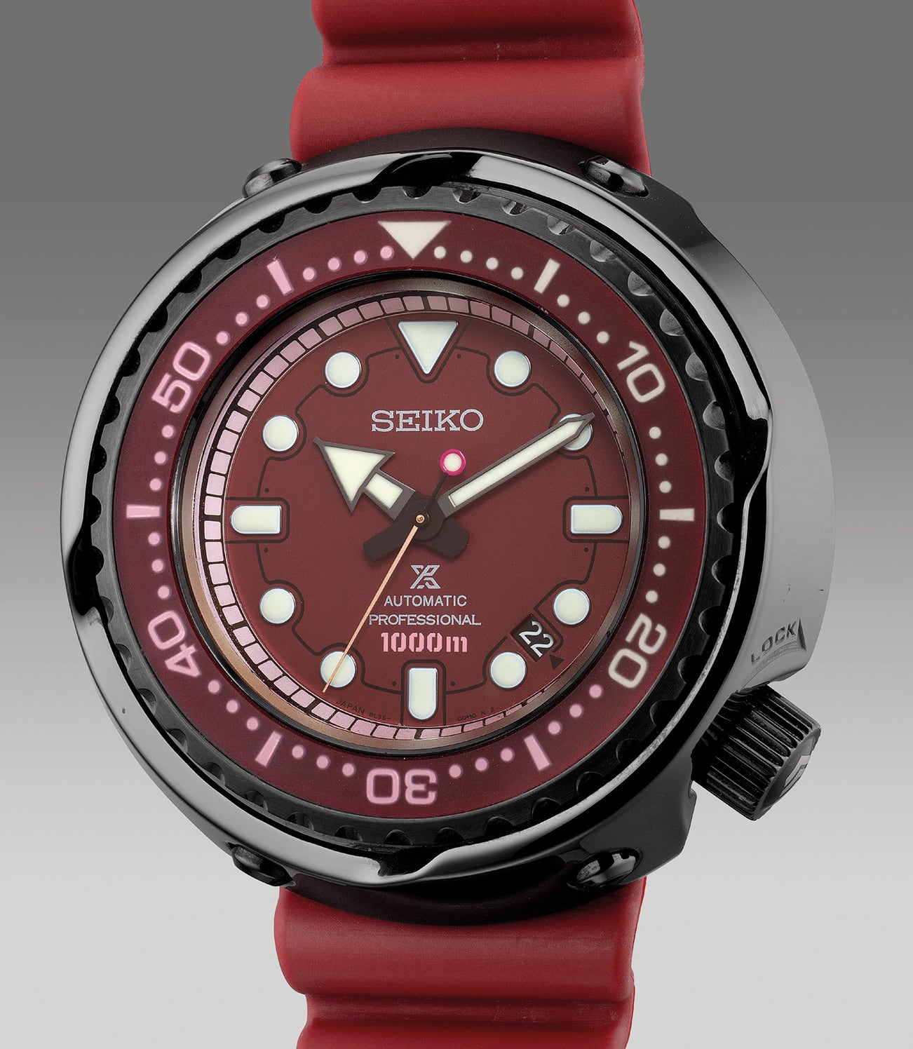 To commemorate the important anniversary, Seiko launched a series of limited edition timepieces via the high performance Prospex diver’s watch. With three watches launched, each themed to represent the main robots in the anime, the three watches consists of a Spring Drive GMT as well as a pair of “Tuna” dive watches. With exceptional performance, Seiko’s innovative “Tuna” dive watches earned its nickname due to its peculiar and oversized case construction. Bulky and packed with a punch, the dive watch has an impressive depth rating of 1,000 meters without the need of a Helium gas escape valve. Impressively, the Seiko “Tuna” bears over 20 patents, including an innovative titanium outer case (give the watch a “Tuna can” appearance), as well as the L-shaped single-crystal gasket (which defeats the purpose of a helium gas escape valve).