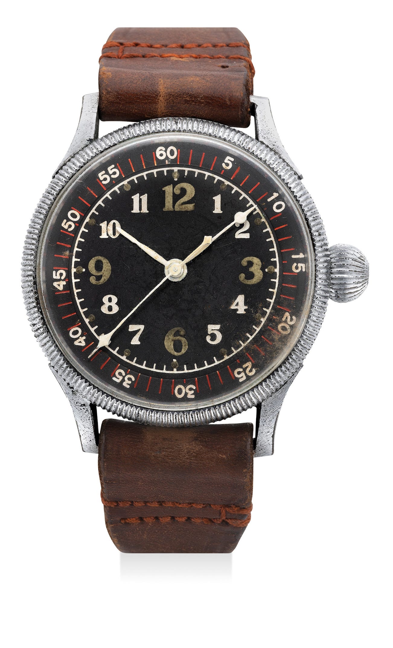 An extremely rare and historically oversized nickel-plated pilot’s watch