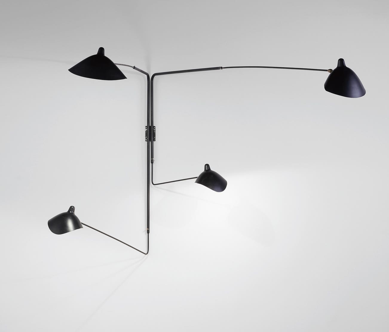 Pivoting four-armed wall light with 'Lampadaire' and 'Casquette' shades