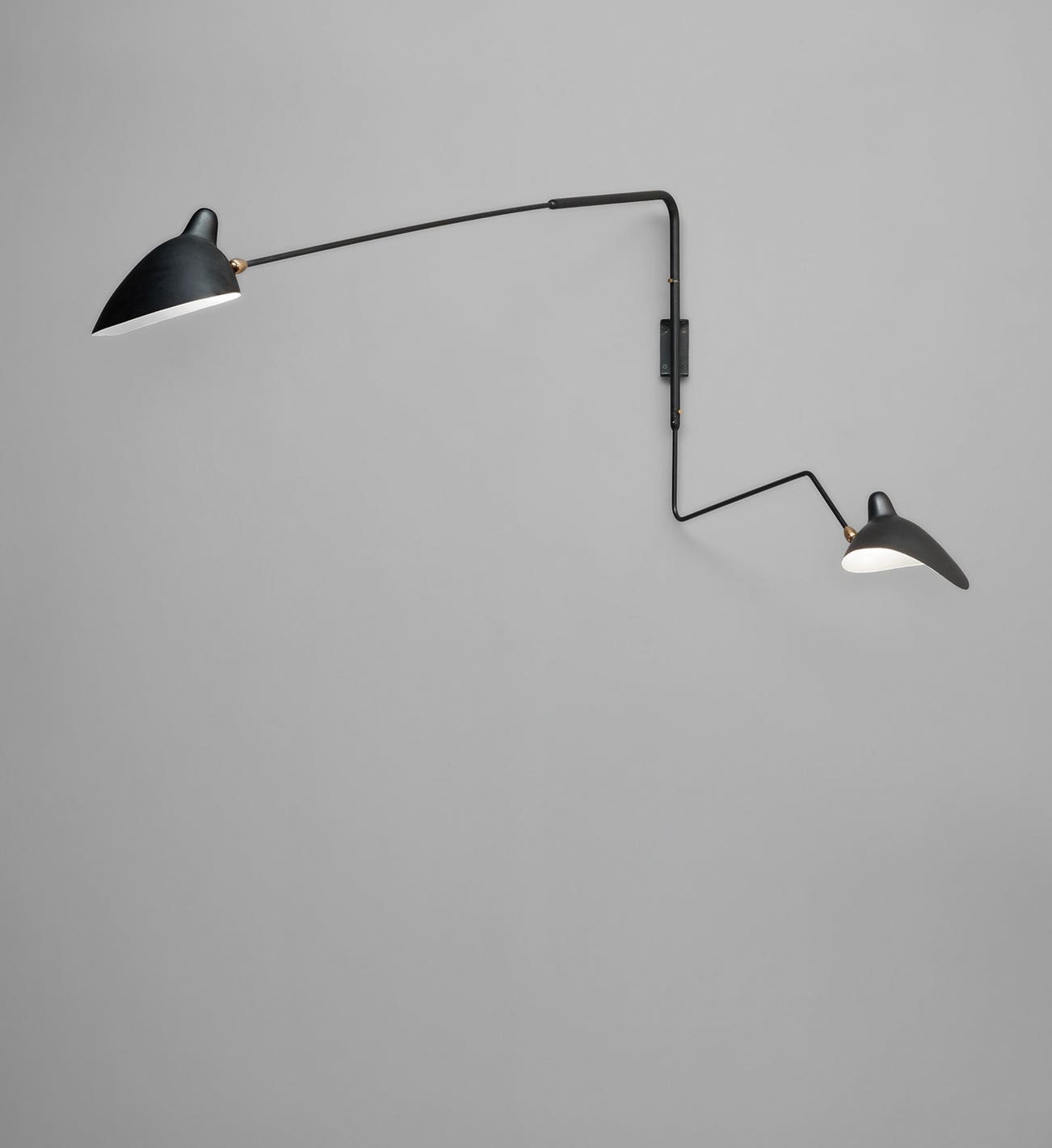 Two-arm angled wall light with one "Lampadaire" and one "Casquette" shade