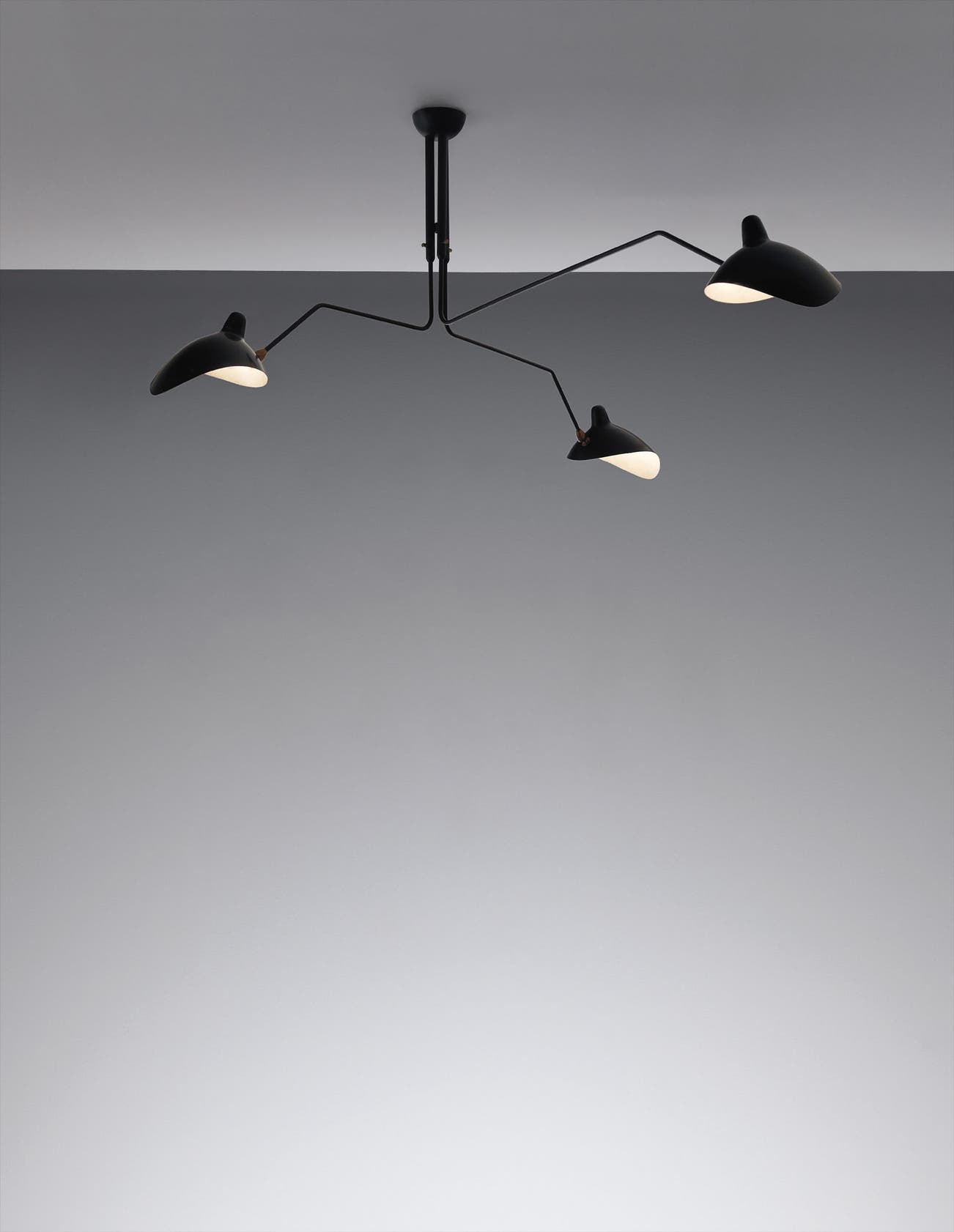 Three-armed ceiling light with "Casquette" shades
