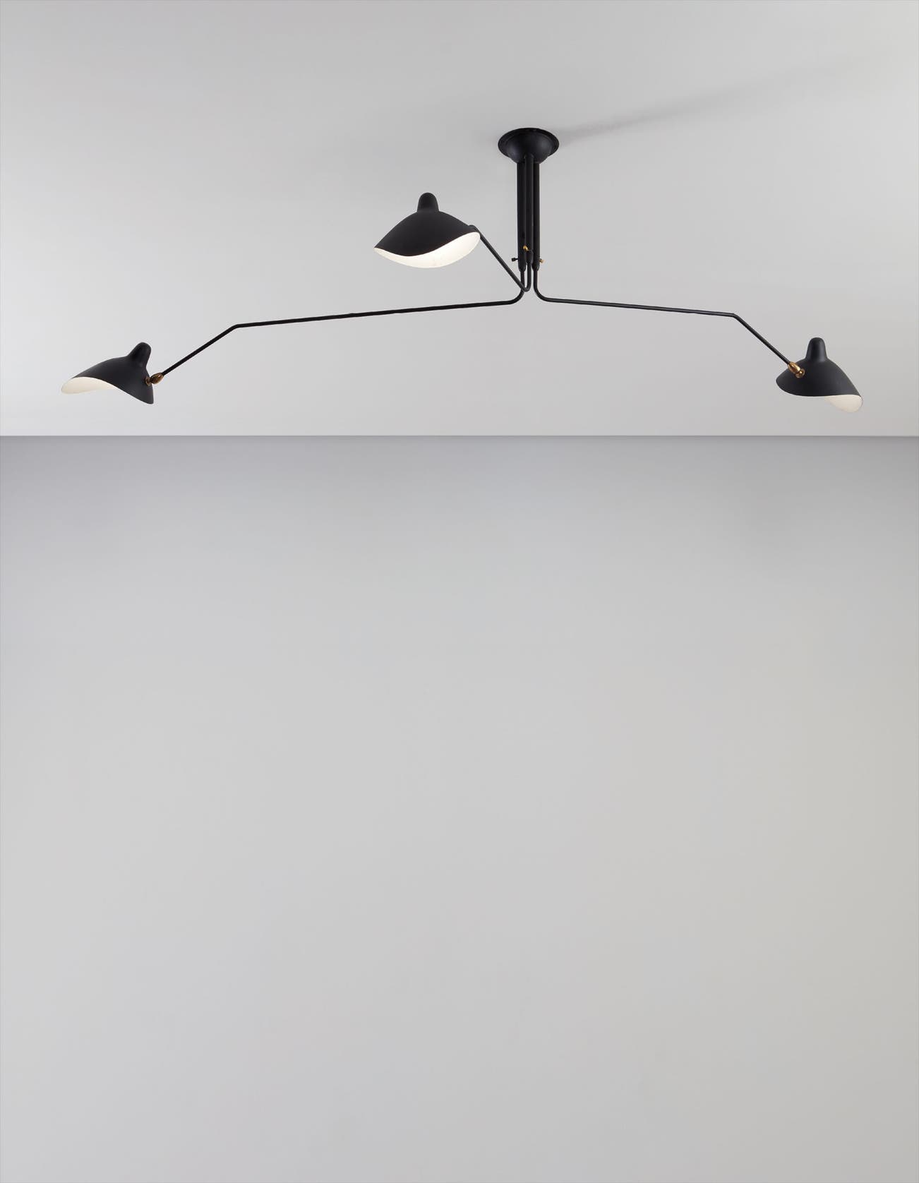 Three-armed adjustable ceiling light with "Casquette" shades