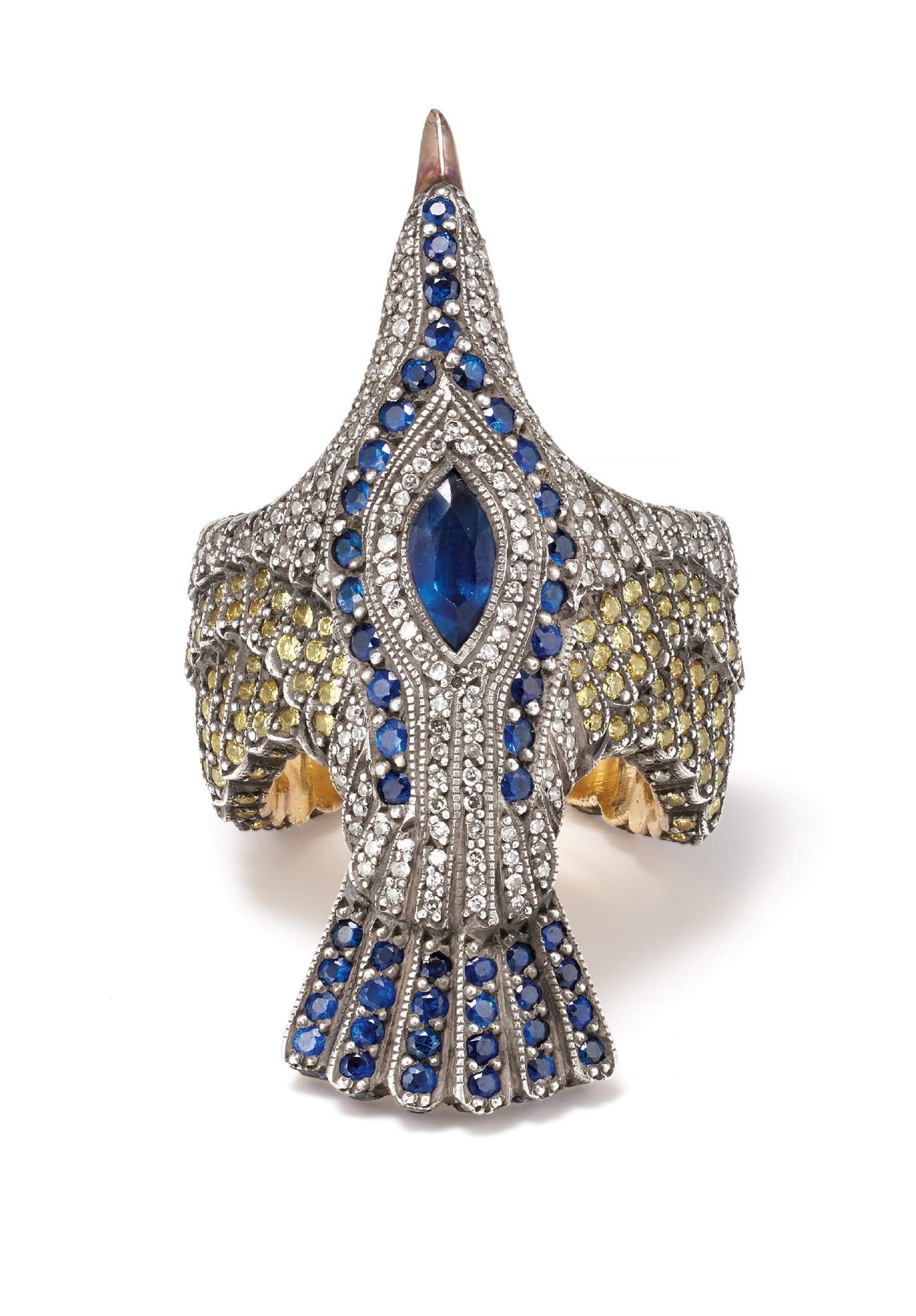 A Diamond, Sapphire, Gold and Silver ‘Seagull’ Ring
