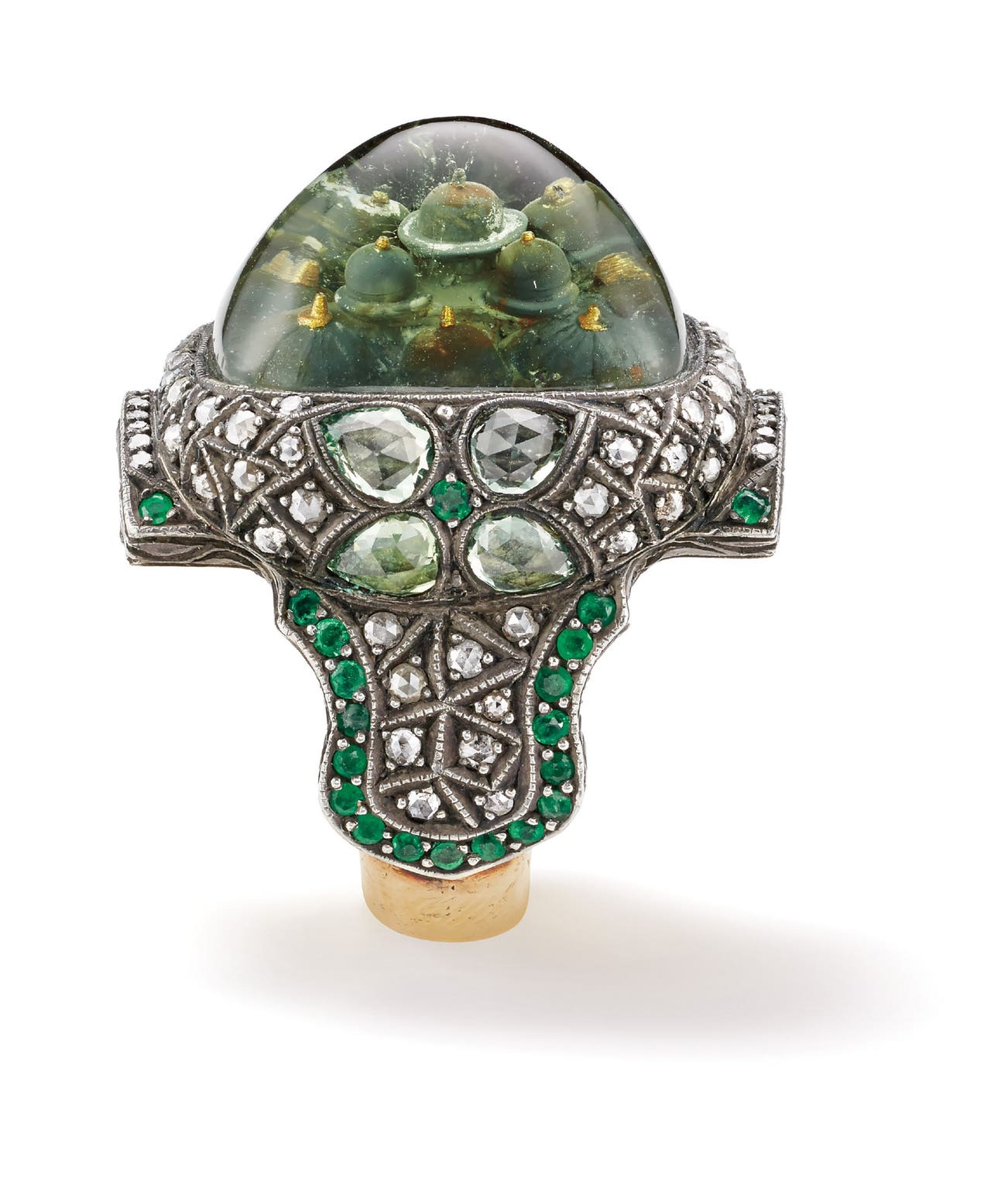 A Rock Crystal, Diamond, Chrysoberyl, Emerald, Gold and Silver ‘Blue Mosque’ Ring