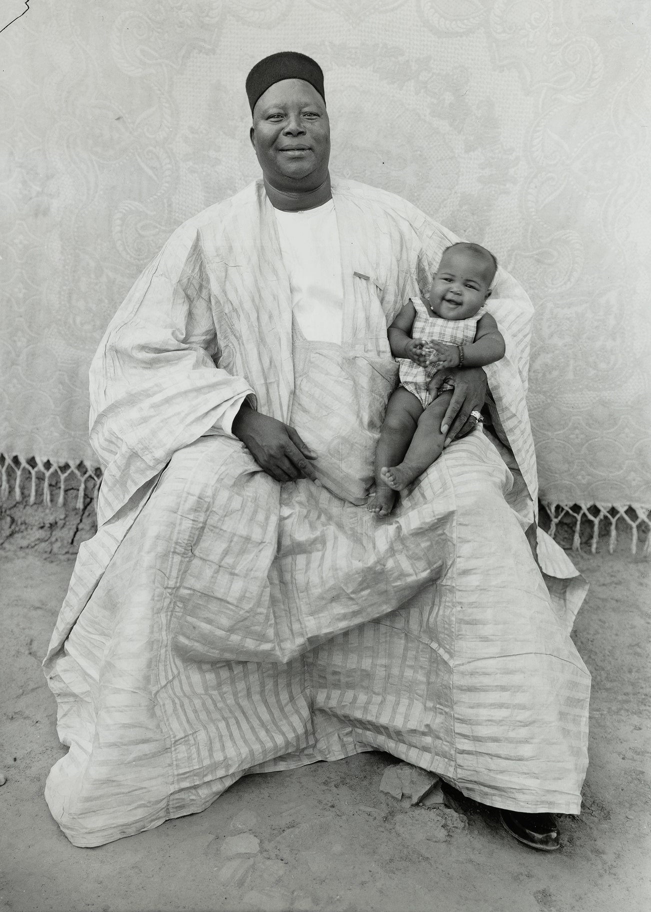'Dressed in a loose boubou, a white smock (forokom), and a black fez, this wonderful giant known to everyone in Bamako is proud of his lovely daughter.'