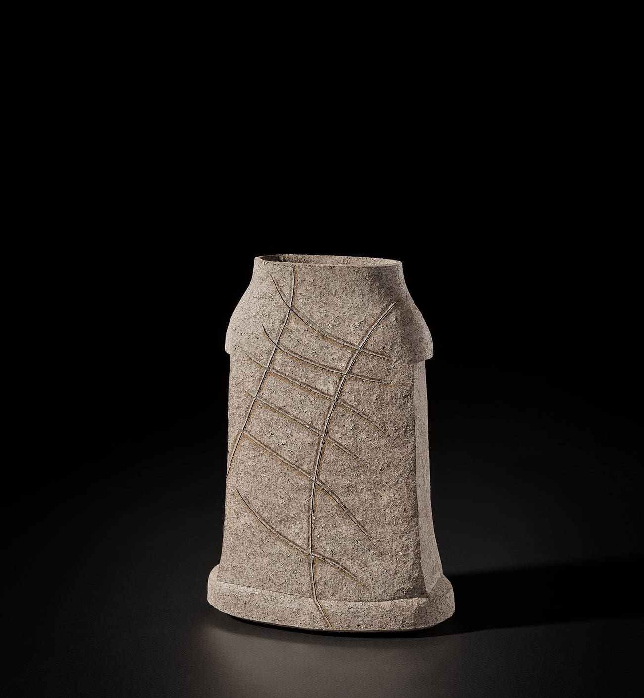 Stoneware, an incised 'ladder' design highlighted with clear glaze.