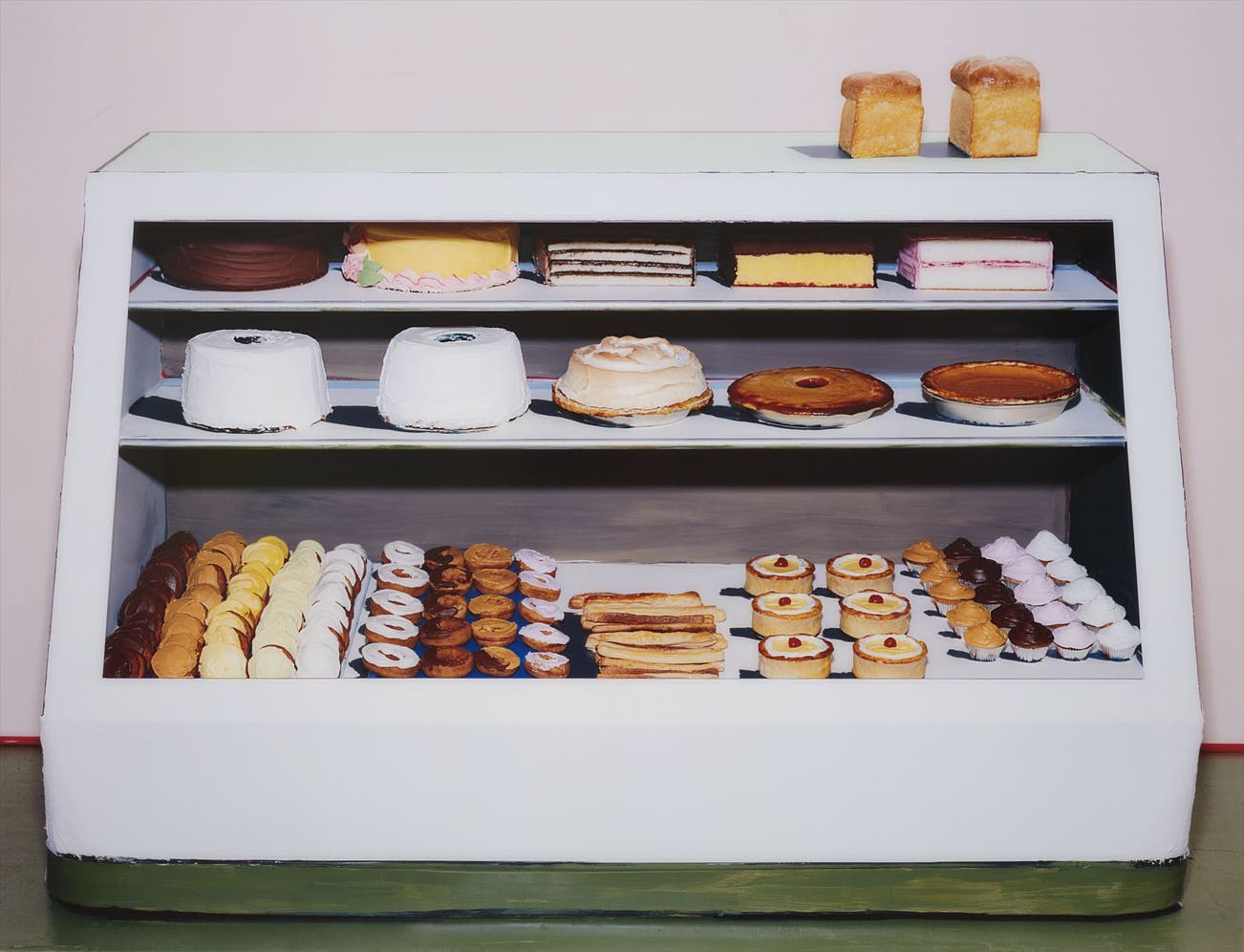 Visions of cakes, candies, cookies, cupcakes, meringues and every other imaginable sumptuous sweet from a candyland of mid-century American consumption radiate from Sharon Core’s seductive scenes. In Bakery Counter, 1962, 2004, Core transmutates Wayne Thiebaud’s oil canvas, first into painstakingly precise handmade baked goods and then into an undeniably tempting, perfectly lit photograph that mirrors Thiebaud’s painting in composition, style, scale and name. An exceptionally skilled baker, Core once worked as an assistant food stylist for publications like Martha Stewart Living and the HoneyBaked Ham catalogue, training in the production of food meant to be consumed by only the eyes. While disguising the intricacy of her photographic process, Core’s photographs beautifully address the complex relationship between painting and photography throughout art in the 20th and 21st centuries.