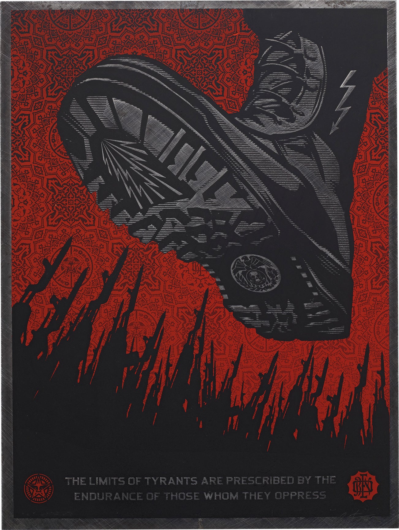 signed and dated 'Shepard Fairey 08' lower right; further numbered '2/2' lower left; further signed, numbered and dated 'Shepard Fairey 08 2/2' on the reverse
