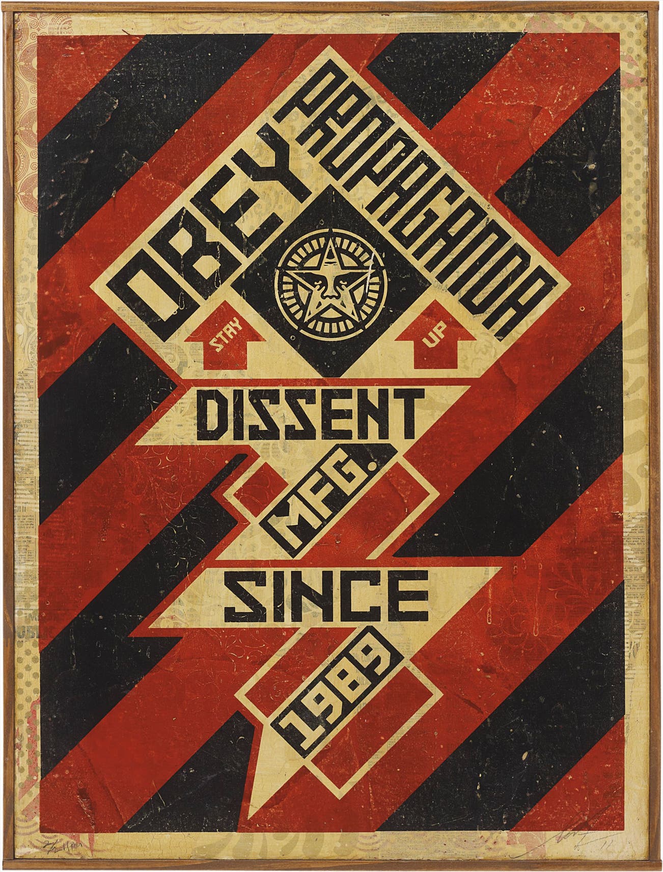 Signed 'Shepard Fairey 11' lower right and numbered '2/2 HPM' lower left. Further signed, numbered and dated '2/2 HPM Shepard Fairey 11' on the reverse. This work is accompanied by a certificate of authenticity.