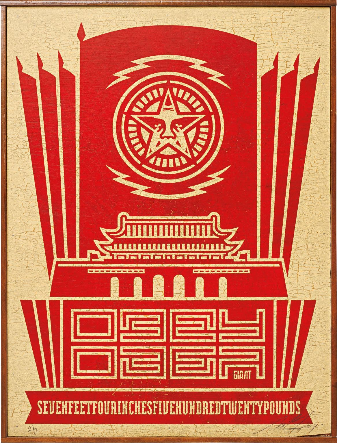Signed and dated 'Shepard Fairey 04' lower right, numbered '2/2' lower left and again '2/2' on the reverse. This work is number 2 from an edition of 2.