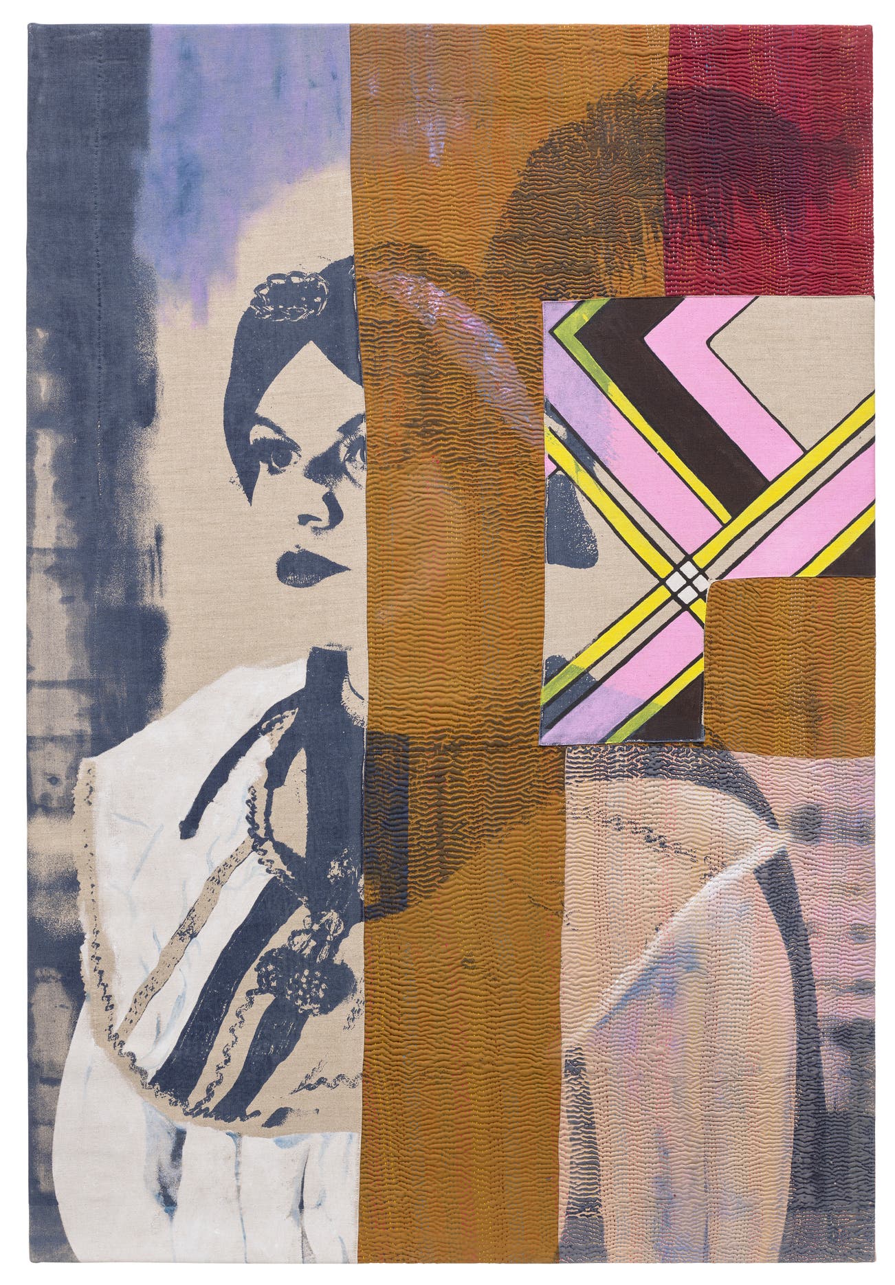 acrylic and silkscreen print on vintage textile