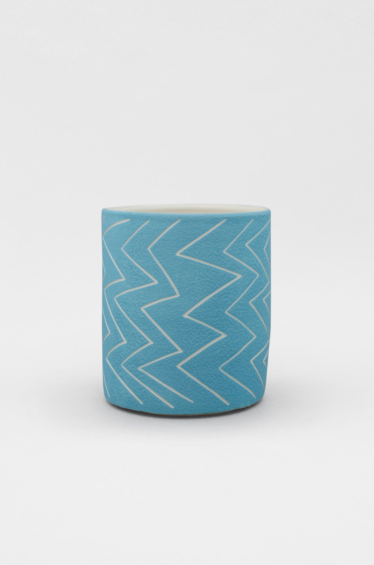 Dynamic white lines incised on the surface of the porcelain pot enliven the vibrant blue surface of Shio Kusaka’s (zig zag 6). The energetic irregularity of the lines and subtly ovular circumference of the piece demonstrates the artist’s interest in imperfections: ‘I am not trying to make it wrong, but I am aware that I’m not right too’ (the artist, quoted in Stephanie Eckardt, 'At Home and in the Studio with Shio Kusaka and Jonas Wood', W Magazine, 7 July 2016, online). Born in Japan, Kusaka’s interest in ceramics emerges from her childhood experience watching her grandmother perform traditional tea ceremonies. Extending the influences of her Japanese heritage while reflecting the artist’s intimate knowledge of Western art historical traditions, (zig zag 6) encapsulates both the minimalist motifs of Japanese Iron Age ceramics and the geometric lines of Agnes Martin that permeate Kusaka’s artmaking practice.