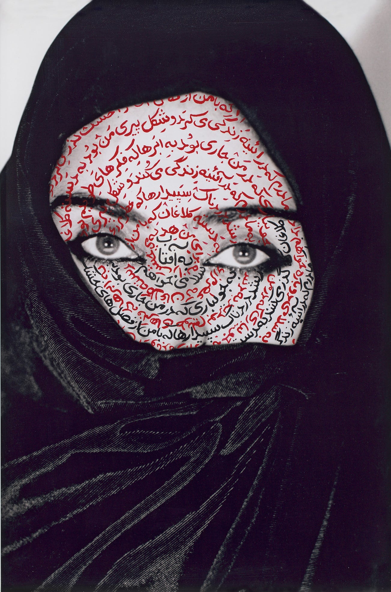 The calligraphic text within the image is a poem by contemporary Iranian feminist poet, Forough Farrokhzad from her Remembering the Flight: Twenty