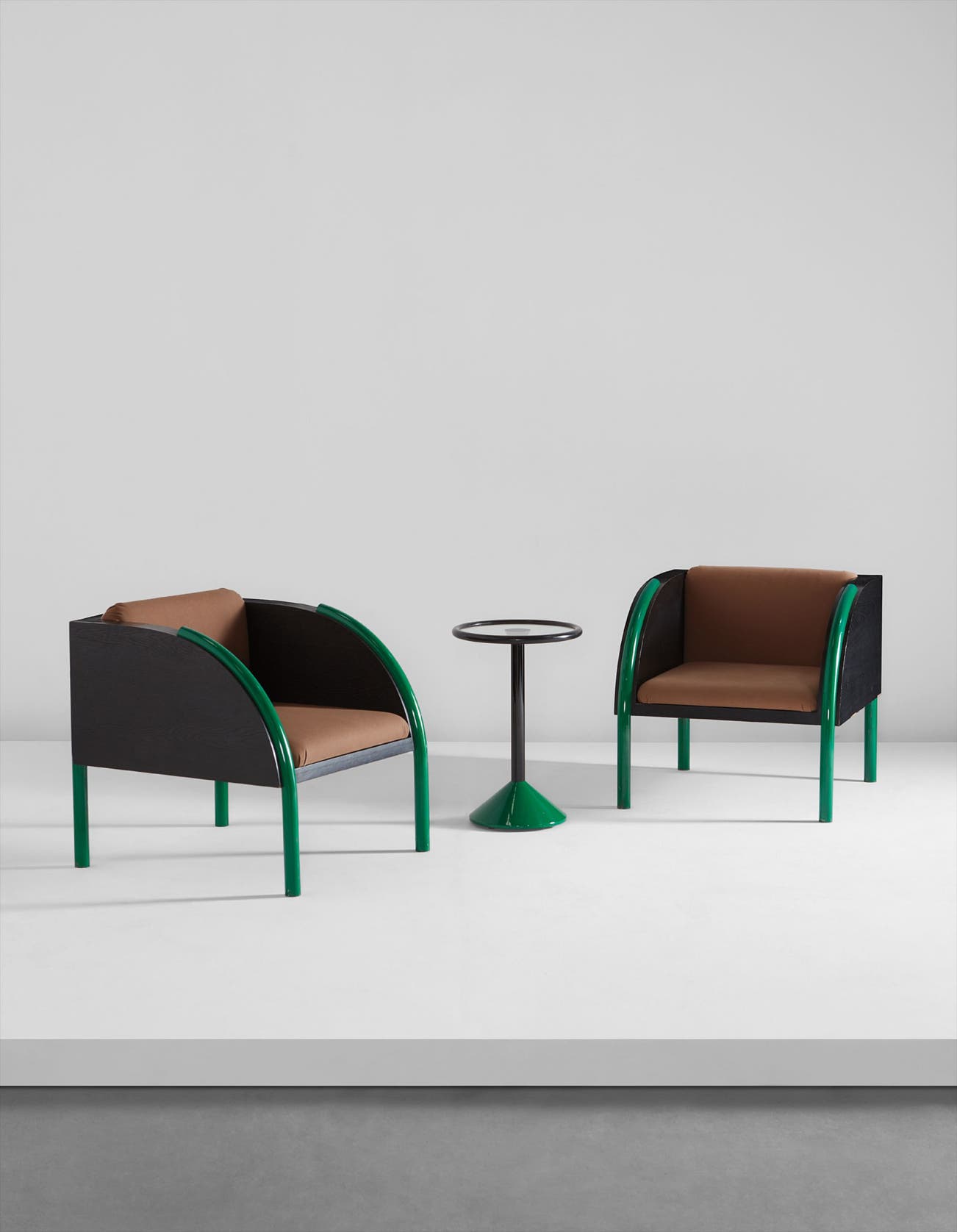 Pair of armchairs and side table, from the Livina Yamagiwa building, Tokyo