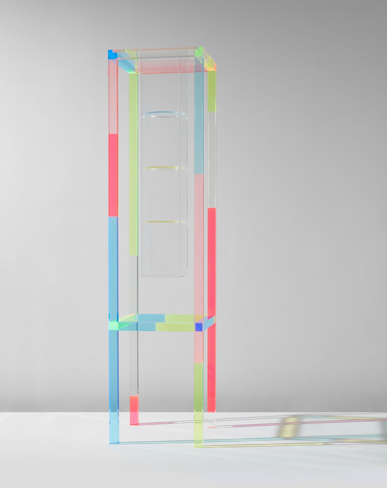 Throughout his career he found inspiration in many places, including the work of Italian designers (particularly those embodying the Memphis style) and American conceptual artists like Donald Judd, and combined such inspirations with his own ingenuity and creativity. His dynamic use of materials, particularly those that were transparent, combination of surfaces and awareness of the potential of light in design led him to create objects that stretched structural boundaries and were also visually captivating. These qualities are embodied in his famous Glass Chair (1976).