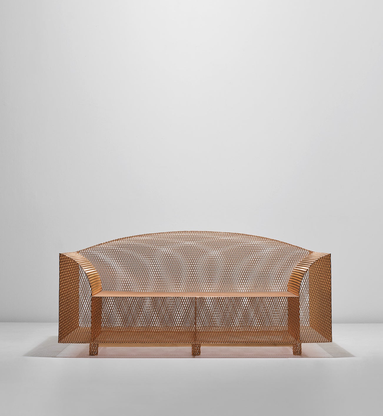 The wistful jazz standard How High the Moon, penned in 1940 by lyricist Nancy Hamilton and once a staple in Ella Fitzgerald’s repertoire, is an apt title for Shiro Kuramata’s iconic, nearly translucent sofa made from copper‐plated metal mesh. Like the song about longing after a distant love, this ghostly object seems to recall something familiar but still far away. We can discern its gauzy silhouette, as though coaxed from the depths of memory, but its form appears not quite tangible. Since its debut in 1986, 'How High the Moon' has been an emblem of 20th century design, and remains a masterwork within the Japanese designer’s oeuvre, which encompassed designs for furniture, lighting, objects, and some 300 interiors. It’s consummate Kuramata: minimal and serene at first glance, yet imbued with aspects of whimsy, illusion, and reference, themes that would resonate in Kuramata’s works until his death in 1991.