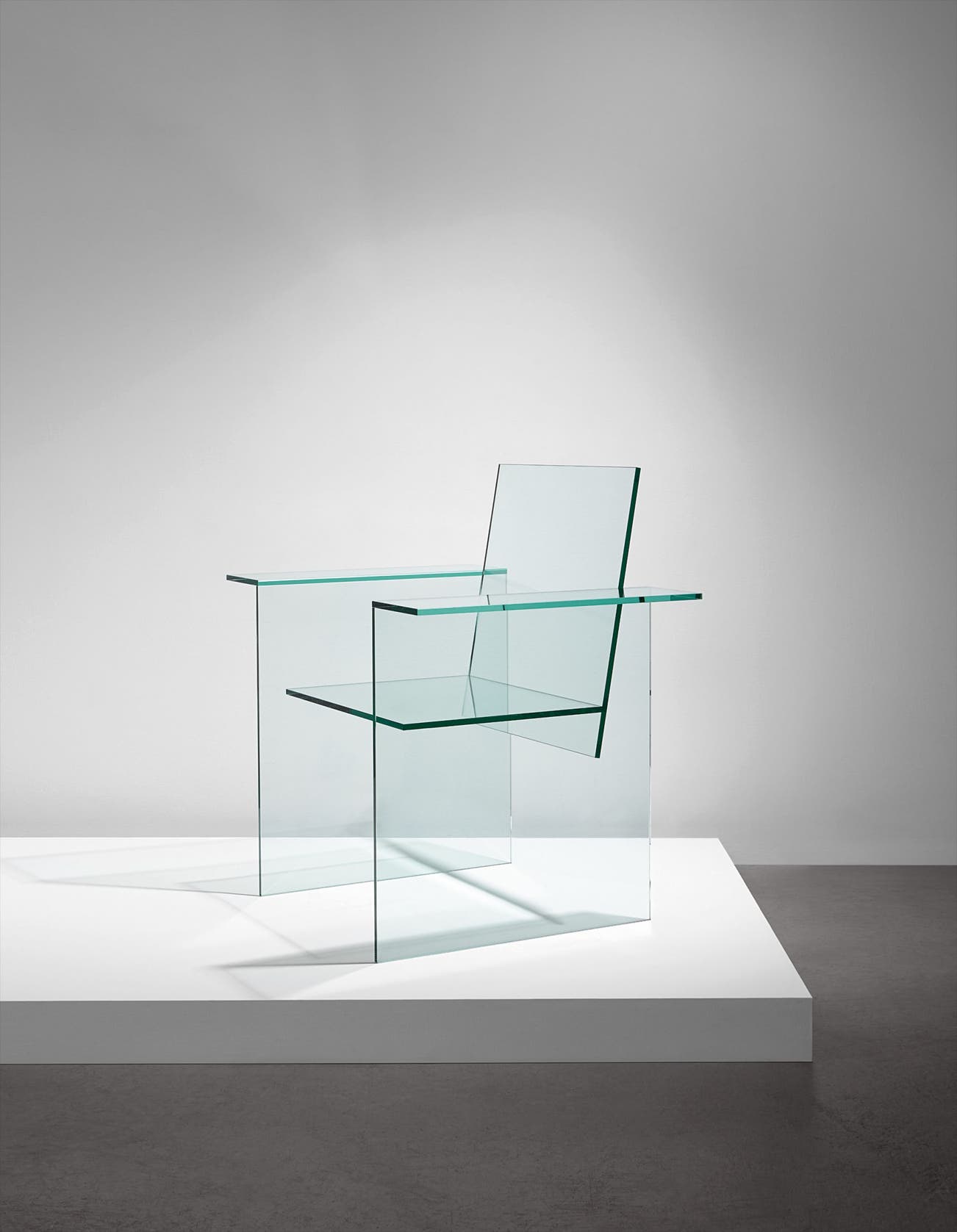 Throughout his career he found inspiration in many places, including the work of Italian designers (particularly those embodying the Memphis style) and American conceptual artists like Donald Judd, and combined such inspirations with his own ingenuity and creativity. His dynamic use of materials, particularly those that were transparent, combination of surfaces and awareness of the potential of light in design led him to create objects that stretched structural boundaries and were also visually captivating. These qualities are embodied in his famous Glass Chair (1976).
