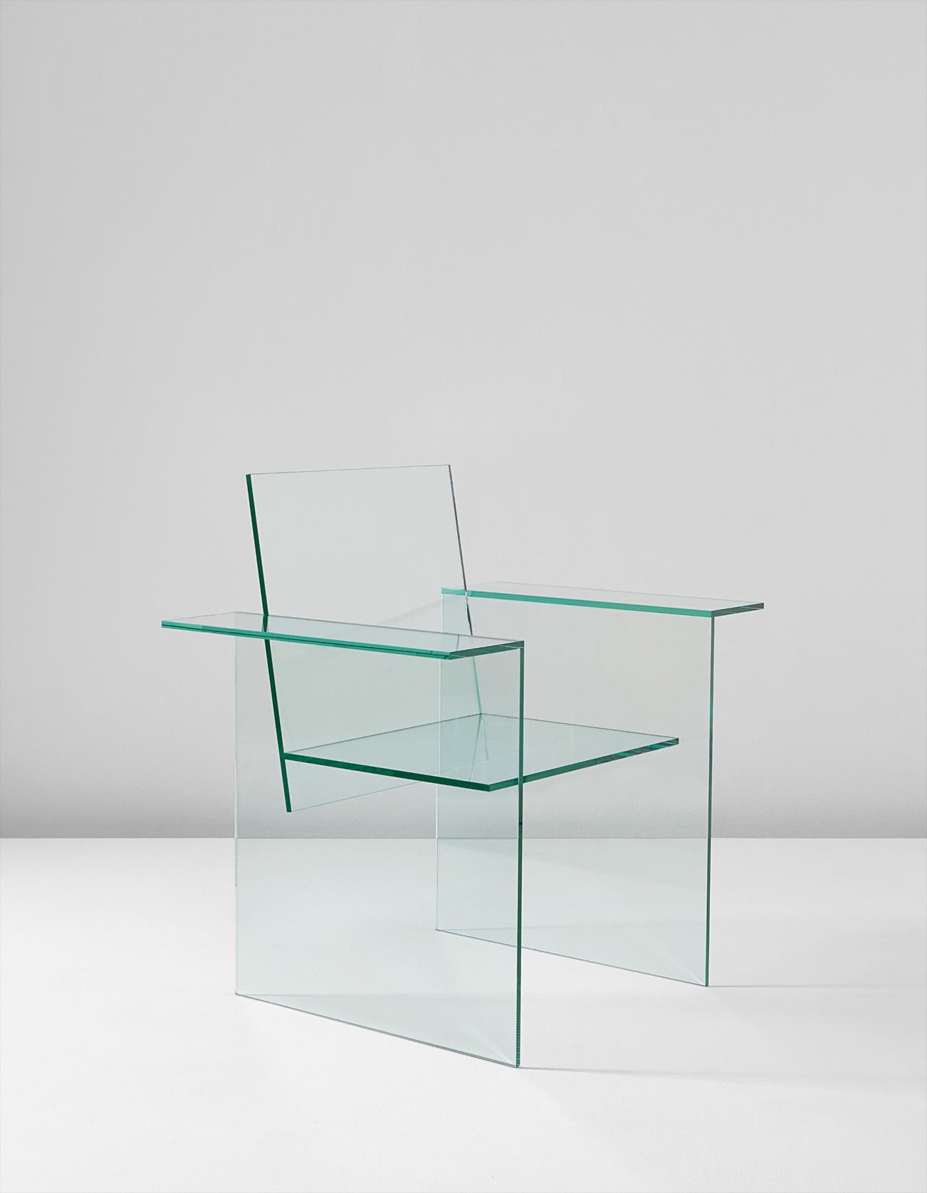 Throughout his career he found inspiration in many places, including the work of Italian designers (particularly those embodying the Memphis style) and American conceptual artists like Donald Judd, and combined such inspirations with his own ingenuity and creativity. His dynamic use of materials, particularly those that were transparent, combination of surfaces and awareness of the potential of light in design led him to create objects that stretched structural boundaries and were also visually captivating. These qualities are embodied in his famous Glass Chair (1976).