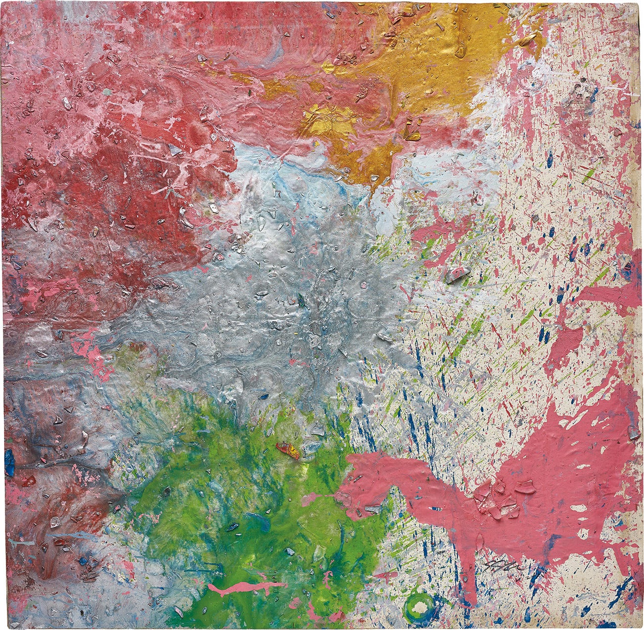 enamel and broken glass on canvas laid on canvas