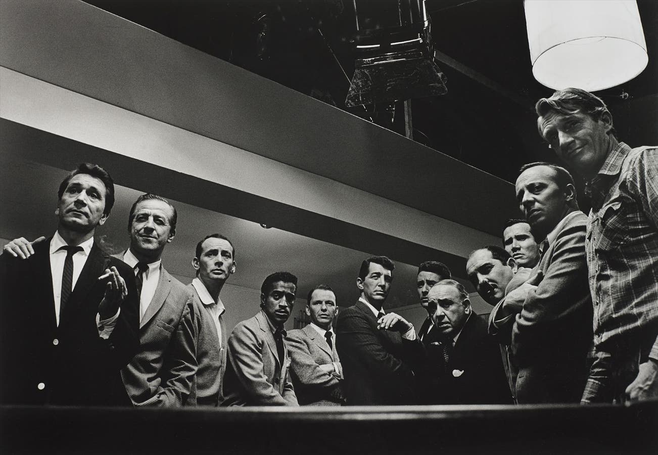 Cast of Oceans Eleven; Nick Conti, Jerry Lester, Joey Bishop, Sammy Davis Jr., Frank Sinatra, Dean Martin, Peter Lawford, Akim Tameroff, Richard Benedict, Henry Silva, Norman Fell and Clem Harvey