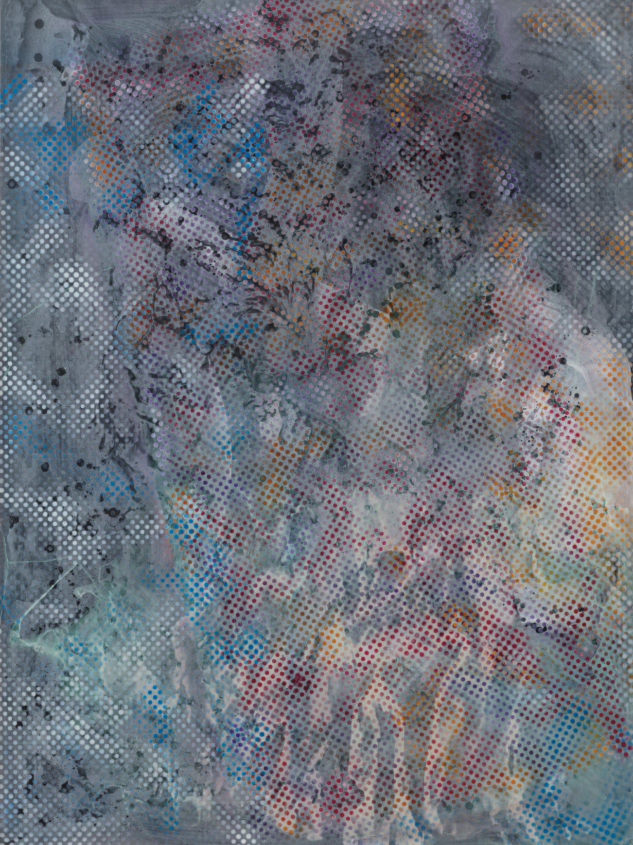 From the 1960s, his radical approach to painting aimed to confront the consumerist culture that materialized in post-war Germany. Riveted by the printing mechanisms utilized by mass-marketing advertisements, Polke sought to explore a process that destabilized this commercial imagery, questioning its validity and the intended purpose of coercive mass media communication. His haunting and atmospheric washes of paint run down the surface of Untitled, staining and smudging the raster-dots below. The traces of Polke’s approach to artistic process is revealed in the shifting surface of the work itself, which stands as a recorded history of its own transformational status. Untitled seems to be continuously mutating, as though the viewer is witnessing a very charged and fluid evolution. Polke plays with imagery and allows a kind of spontaneity in his production, as Tacita Dean explains, "He intuited which gesture was the right one and acted accordingly. Such knowledge is subcutaneous and should never be brought into the conscious realm but has to stay just beneath its surface. Not many artists can keep it there. Polke relied on such mechanisms as chance and contingency, and I suspect he worked quickly and without pause for unnecessary thought."(Tacita Dean, “Higher Beings Send Peas,” Alibis: Sigmar Polke 1963-2010, The Museum of Modern Art, New York, 2014, p. 167) Fluctuating between the temporal and the perpetual, Untitled represents a shifting portal of complex, layered and abstract imagery, which has the ability to engage the beholder at every level. The visual instability and richness of Untitled, with its myriad of hues, processes and patterns, as Polke claimed, has the ability to connect “everything to everything, establishing an endless rush of association until they turn against one another.”