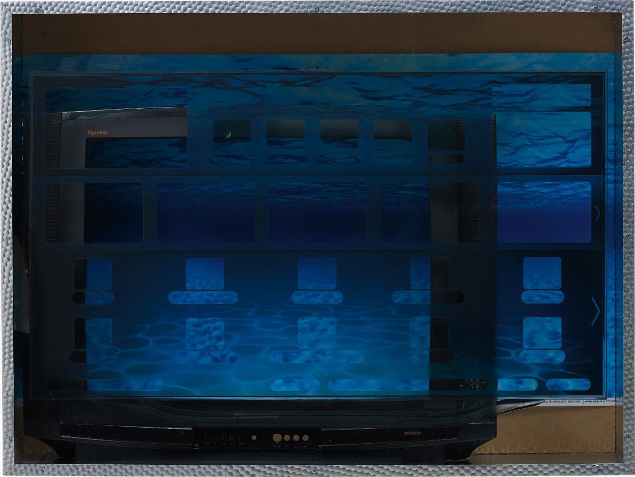 aluminium, wood, CRT television casing, digital print on Plexiglas