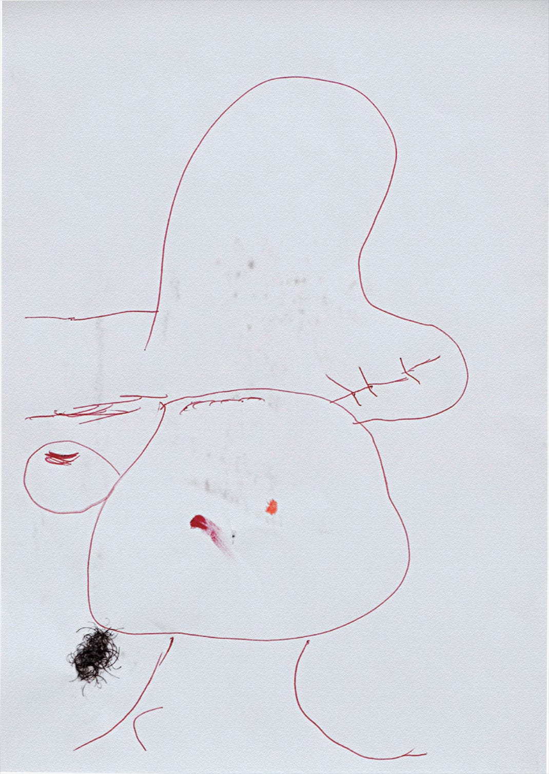 ink, acrylic and hair on paper