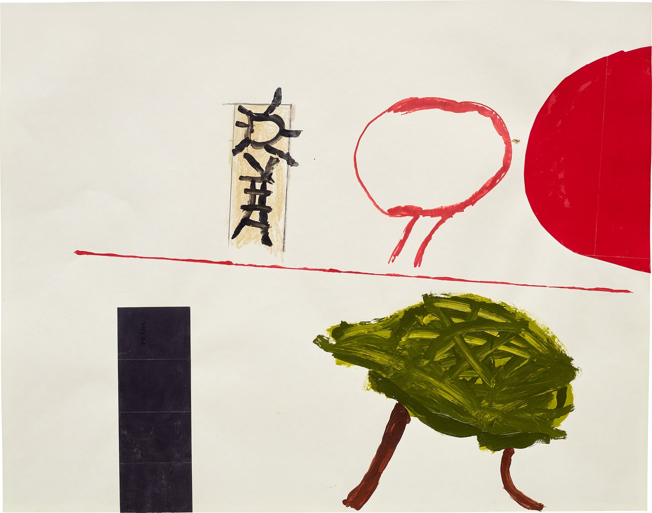 acrylic, nail polish, graphite, Sharpie and collage on paper